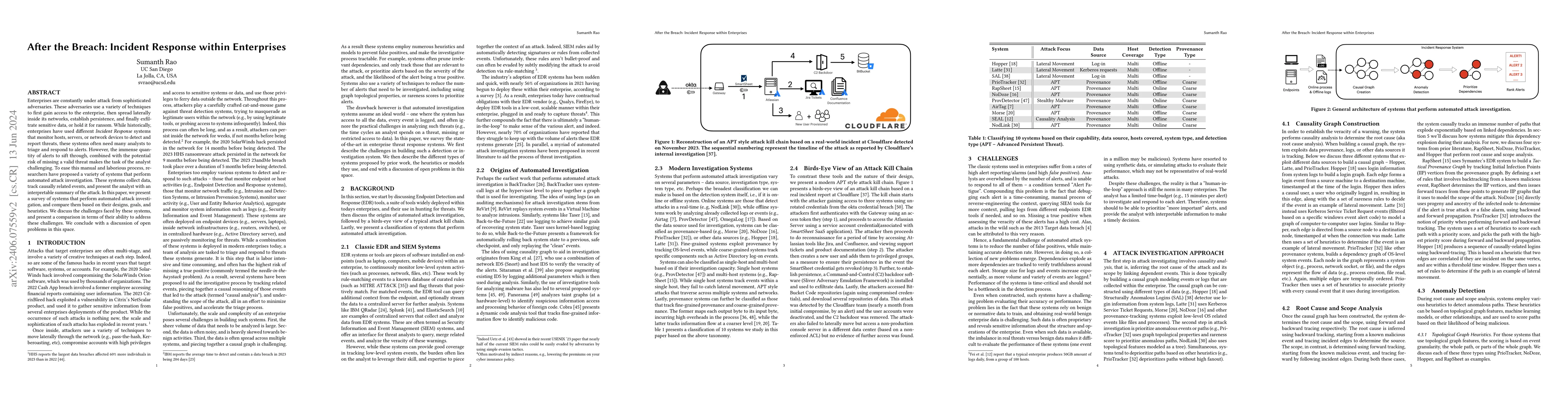 Enterprises are constantly under attack from sophisticated adversaries. These adversaries use a variety of techniques to first gain access to the enterprise, then spread laterally inside its networks, establish persistence, and finally exfiltrate sensitive data, or hold it for ransom. While historically, enterprises have used different Incident Response systems that monitor hosts, servers, or network devices to detect and report threats, these systems often need many analysts to triage and respond to alerts. However, the immense quantity of alerts to sift through, combined with the potential risk of missing a valid threat makes the task of the analyst challenging. To ease this manual and laborious process, researchers have proposed a variety of systems that perform automated attack investigations. These systems collect data, track causally related events, and present the analyst with an interpretable summary of the attack. In this paper, we present a survey of systems that perform automated attack investigation, and compare them based on their designs, goals, and heuristics. We discuss the challenges faced by these systems, and present a comparison in terms of their effectiveness, practicality, and ability to address these challenges. We conclude by discussing the future of these systems, and the open problems in this area.