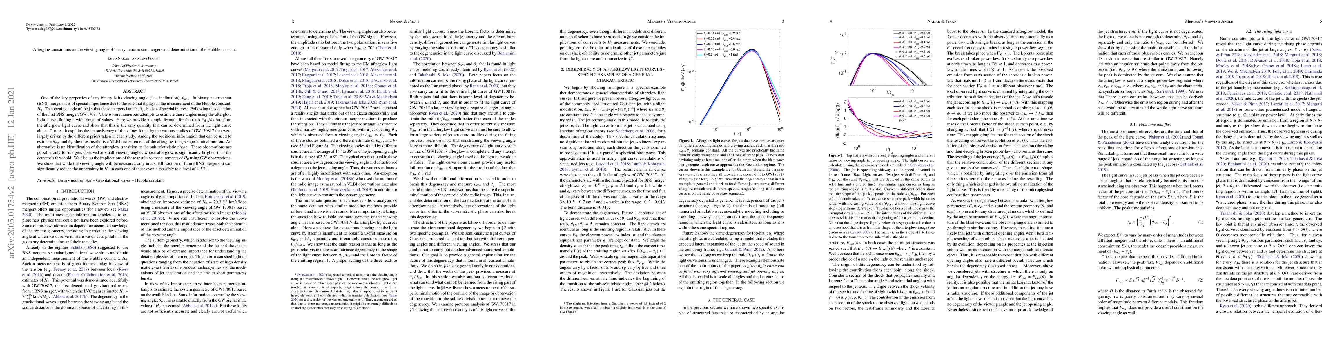 One of the key properties of any binary is its viewing angle (i.e., inclination), $\theta_{\rm obs}$. In binary neutron star (BNS) mergers it is of special importance due to the role that it plays in the measurement of the Hubble constant, $H_0$. The opening angle of the jet that these mergers launch, $\theta_j$, is also of special interest. Following the detection of the first BNS merger, GW170817, there were numerous attempts to estimate these angles using the afterglow light curve, finding a wide range of values. Here we provide a simple formula for the ratio $\theta_{\rm obs}/\theta_j$ based on the afterglow light curve and show that this is the only quantity that can be determined from the light curve alone. Namely, it is impossible to determine each of the angles separately without additional information. Our result explains the inconsistency of the values found by the various studies of GW170817 that were largely driven by the different priors taken in each study. Among the additional information that can be used to estimate $\theta_{\rm obs}$ and $\theta_j$, the most useful is a VLBI measurement of the afterglow image superluminal motion. An alternative is an identification of the afterglow transition to the sub-relativistic phase. These observations are possible only for mergers observed at small viewing angles, whose afterglow is significantly brighter than the detector's threshold. We discuss the implications of these results to measurements of $H_0$ using GW observations. We show that while the viewing angle will be measured only in a small fraction of future BNS mergers, it can significantly reduce the uncertainty in $H_0$ in each one of these events, possibly to a level of 4-5\%. A minority of the mergers with high precision measurements of this kind may dominate in the future the precision in which $H_0$ will be measured using this method.