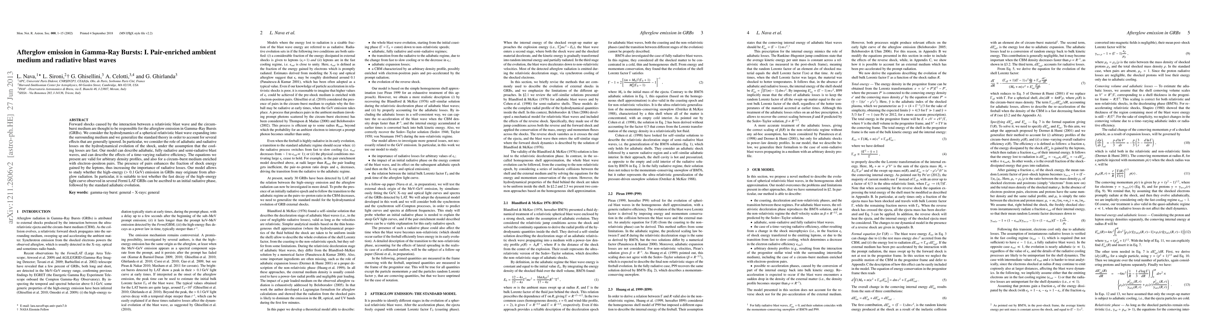 This paper develops a generalized hydrodynamic model for relativistic blast waves in Gamma-Ray Bursts (GRBs), considering both adiabatic and radiative losses, and the impact of a pair-enriched medium. It explores the potential for high-energy afterglow emission and tests if the observed fast decay in high-energy light curves can be attributed to an initial radiative phase.