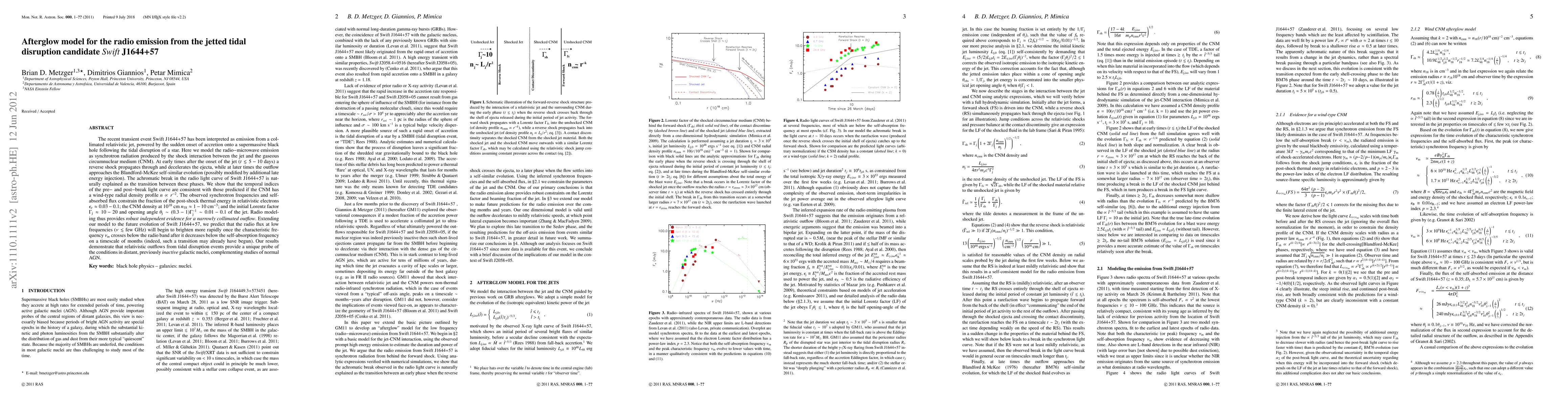 This paper models the radio emission from the transient event Swift J1644+57, attributing it to a relativistic jet from a tidal disruption event. The model explains the achromatic break in the radio light curve as a transition between early reverse shock deceleration and later self-similar evolution phases.
