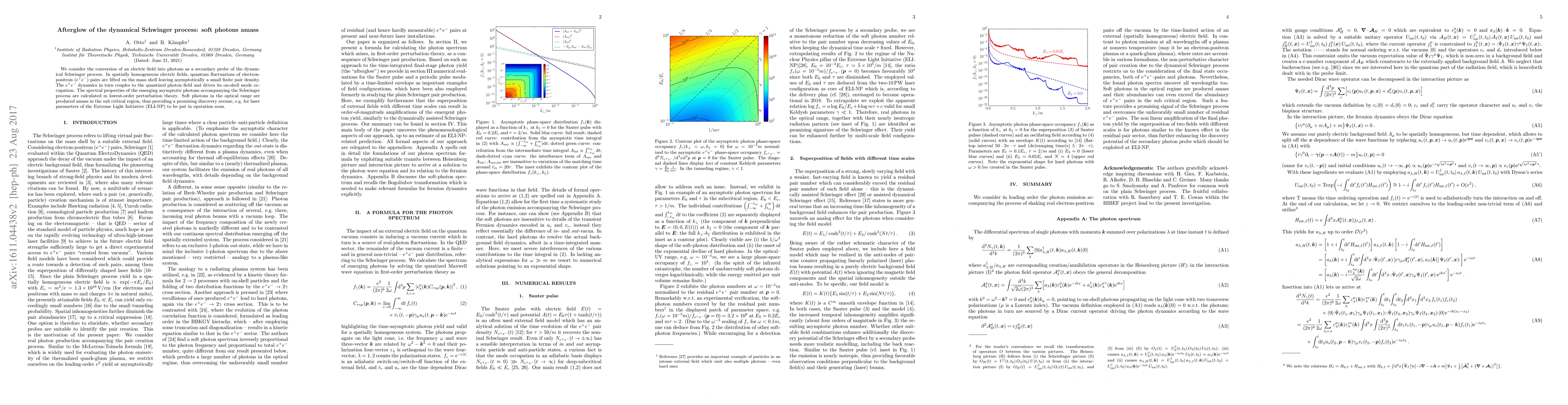 This paper investigates the conversion of electric fields into photons as a secondary probe of the dynamical Schwinger process, revealing the production of soft photons in the optical range. The study calculates the spectral properties of the resulting photons, suggesting a potential avenue for discovery using future laser parameters of the Extreme Light Initiative.
