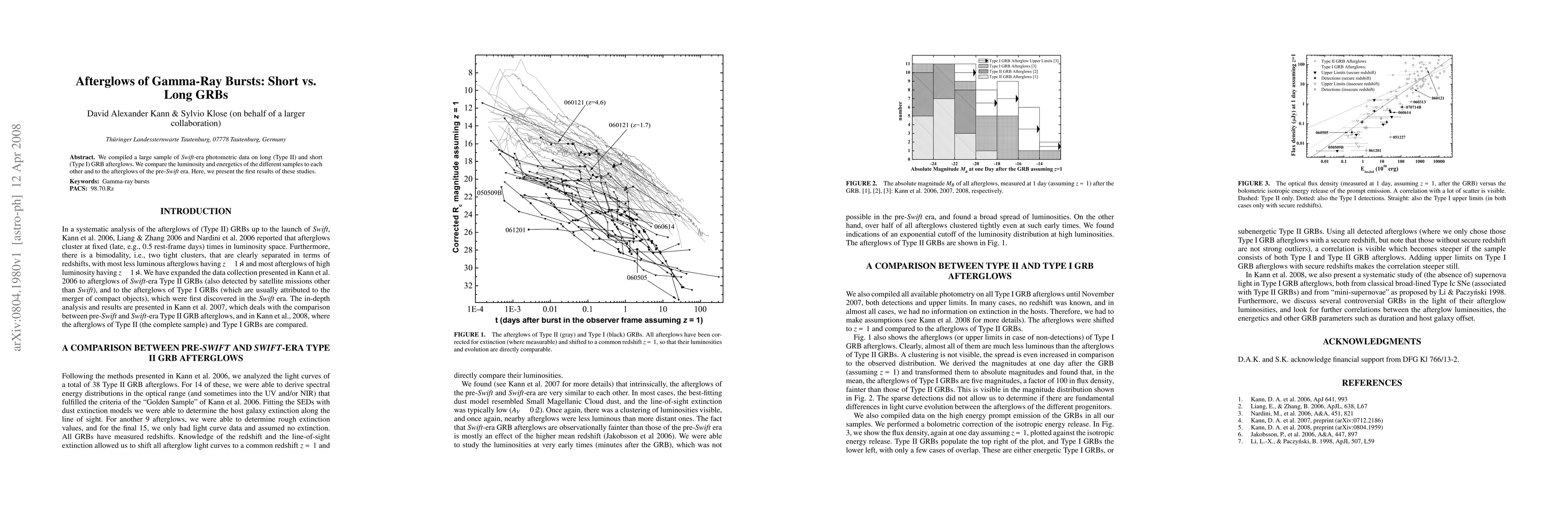 We compiled a large sample of Swift-era photometric data on long (Type II) and short (Type I) GRB afterglows. We compare the luminosity and energetics of the different samples to each other and to the afterglows of the pre-Swift era. Here, we present the first results of these studies.
