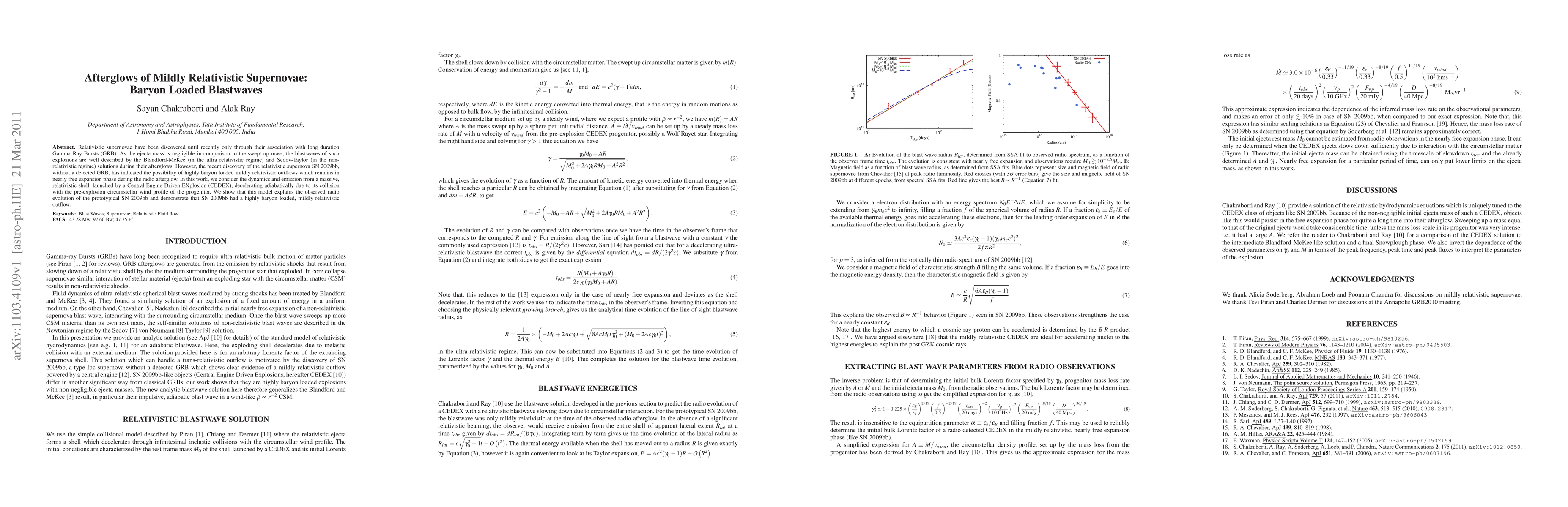 This paper investigates the dynamics and radio afterglow of mildly relativistic supernovae, specifically SN 2009bb, which lacks a detected Gamma Ray Burst. The study proposes a model for the deceleration of baryon-loaded blastwaves from Central Engine Driven Explosions, explaining the observed radio evolution of SN 2009bb.
