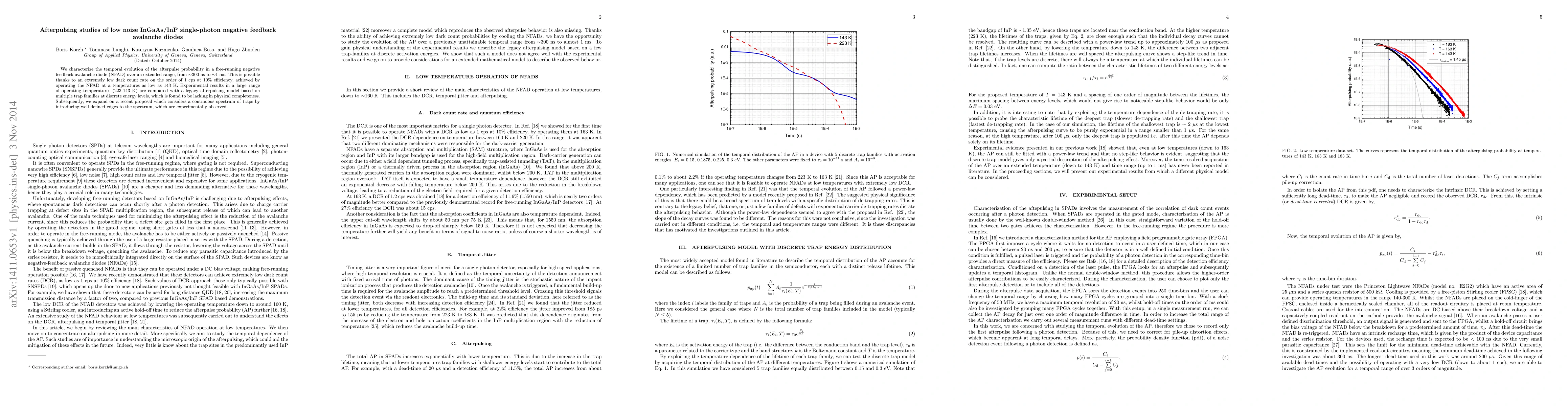 Researchers studied the temporal evolution of afterpulses in low-noise InGaAs/InP avalanche diodes and found a more accurate model that considers a continuous spectrum of traps.