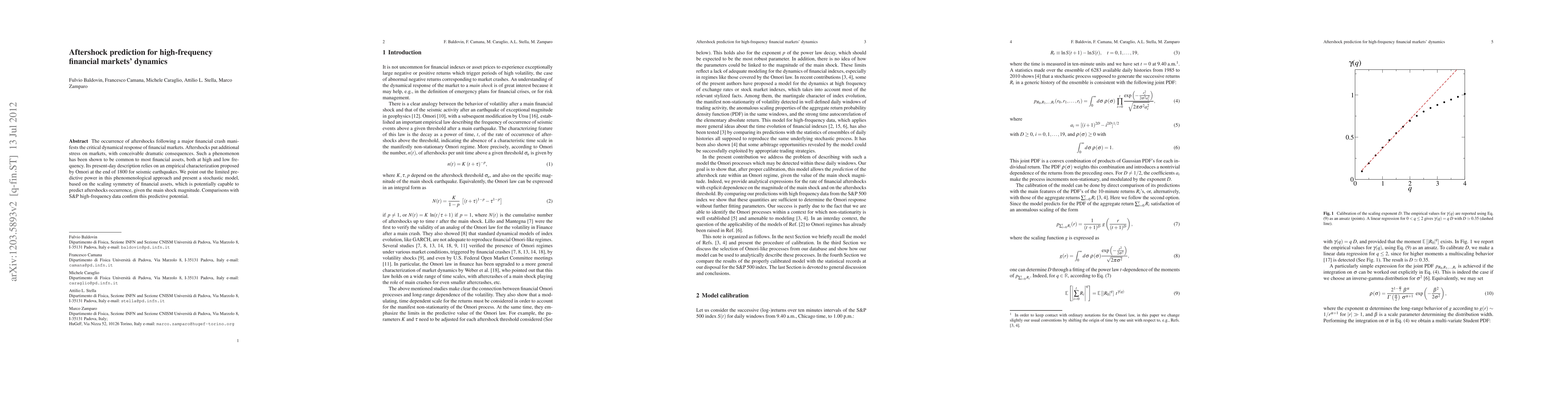 This paper investigates the phenomenon of aftershocks in high-frequency financial markets following major crashes, proposing a stochastic model based on scaling symmetry to predict these aftershocks. The study finds that the traditional empirical approach has limited predictive power, and the new model shows promising results when tested against S&P high-frequency data.