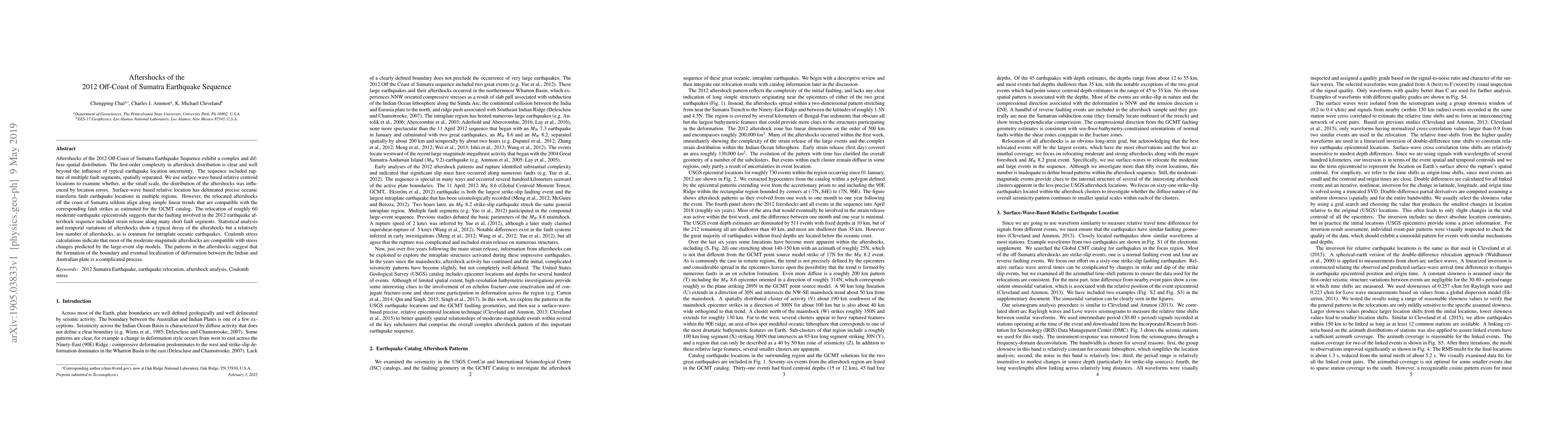 The 2012 Off-Coast of Sumatra earthquake aftershock sequence shows a complex spatial distribution, involving multiple fault segments. Despite high-precision surface-wave based relative centroid locations, aftershocks do not align along simple fault trends, indicating a complicated deformation process between the Indian and Australian plates.