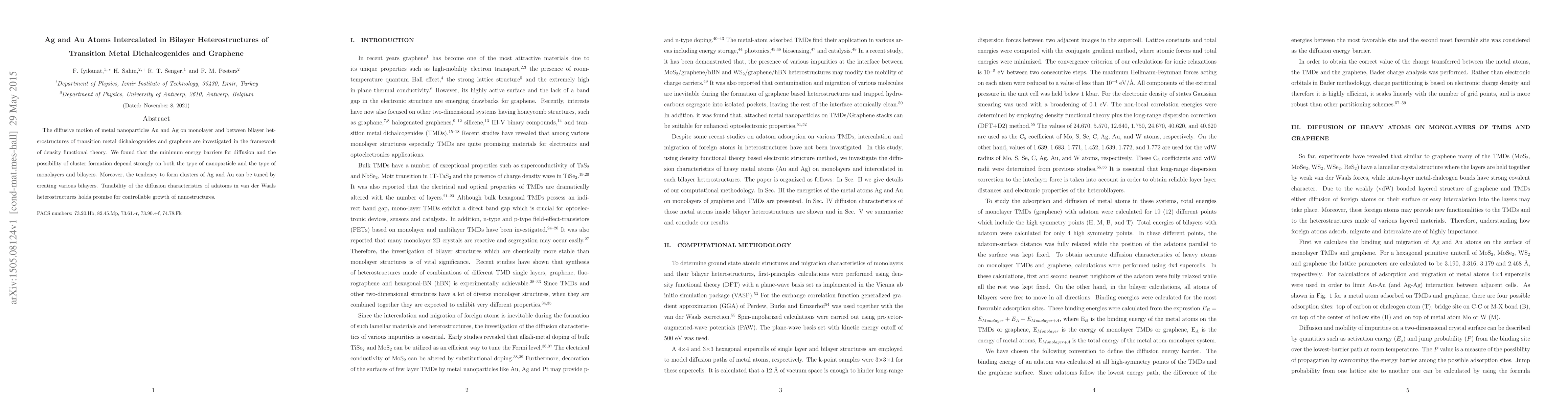 This study investigates the diffusion of Au and Ag nanoparticles in transition metal dichalcogenide/graphene heterostructures using density functional theory. The research reveals that the diffusion barriers and cluster formation are significantly influenced by the nanoparticle type and the specific bilayer configuration, suggesting potential for tunable nanostructure growth in van der Waals heterostructures.