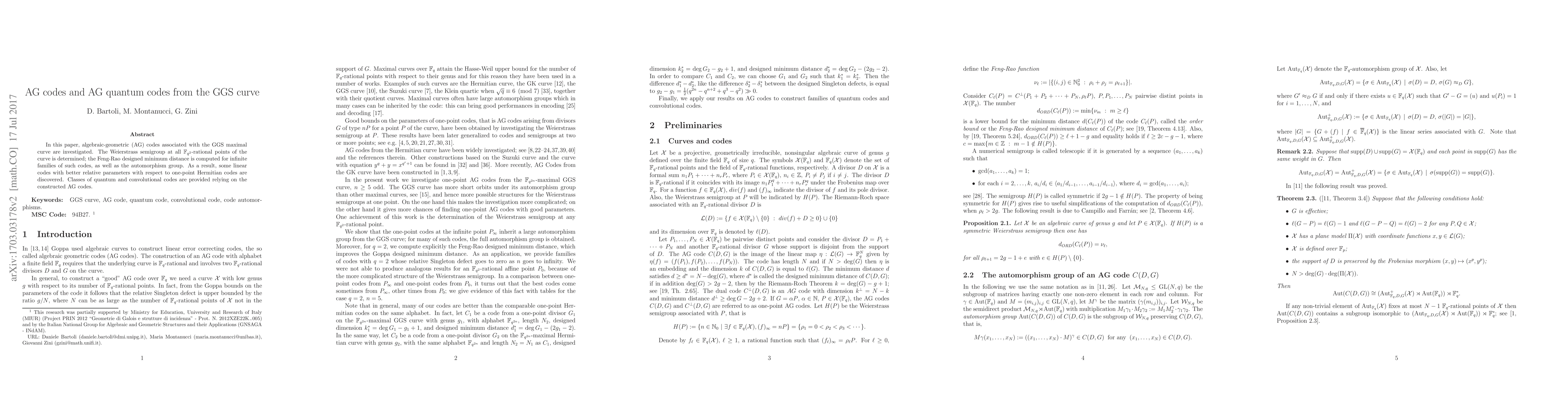 This paper investigates algebraic-geometric (AG) codes linked to the GGS maximal curve, determining the Weierstrass semigroup and Feng-Rao minimum distance for infinite code families. It discovers linear codes with superior parameters compared to one-point Hermitian codes and introduces quantum and convolutional codes based on the constructed AG codes.