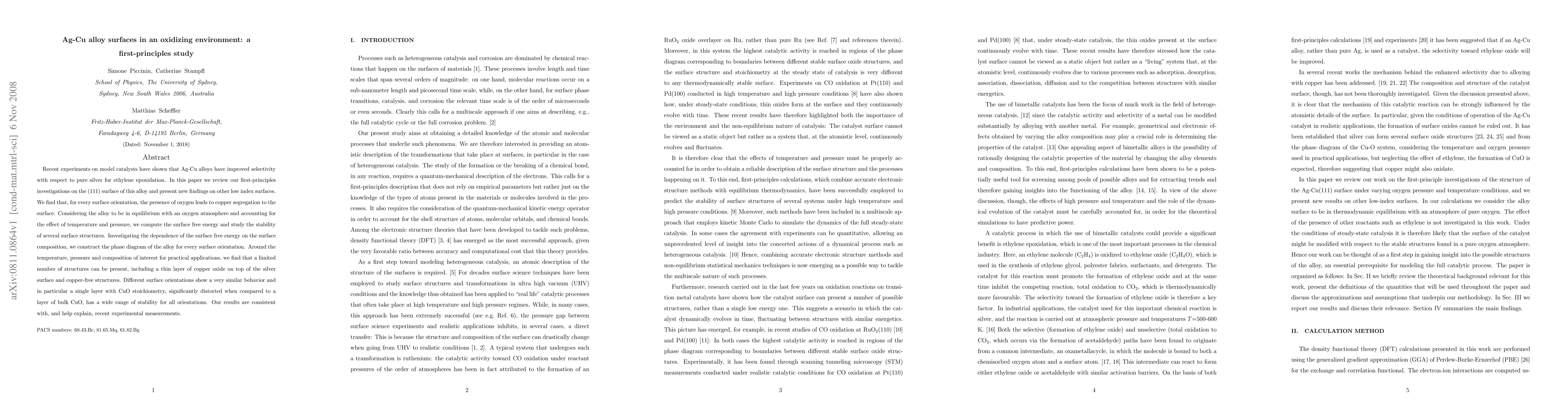 Recent experiments on model catalysts have shown that Ag-Cu alloys have improved selectivity with respect to pure silver for ethylene epoxidation. In this paper we review our first-principles investigations on the (111) surface of this alloy and present new findings on other low index surfaces. We find that, for every surface orientation, the presence of oxygen leads to copper segregation to the surface. Considering the alloy to be in equilibrium with an oxygen atmosphere and accounting for the effect of temperature and pressure, we compute the surface free energy and study the stability of several surface structures. Investigating the dependence of the surface free energy on the surface composition, we construct the phase diagram of the alloy for every surface orientation. Around the temperature, pressure and composition of interest for practical applications, we find that a limited number of structures can be present, including a thin layer of copper oxide on top of the silver surface and copper-free structures. Different surface orientations show a very similar behavior and in particular a single layer with CuO stoichiometry, significantly distorted when compared to a layer of bulk CuO, has a wide range of stability for all orientations. Our results are consistent with, and help explain, recent experimental measurements.