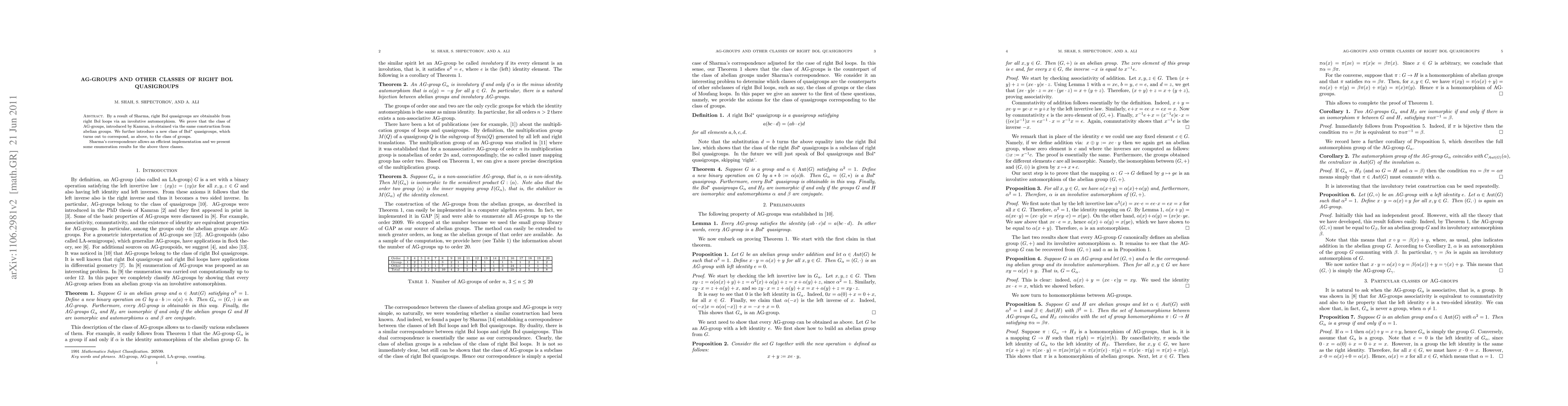 This paper demonstrates that AG-groups can be derived from abelian groups through an involutive automorphism, analogous to how right Bol quasigroups are obtained from right Bol loops. It also introduces a new class of Bol* quasigroups corresponding to groups and provides enumeration results for these three classes.