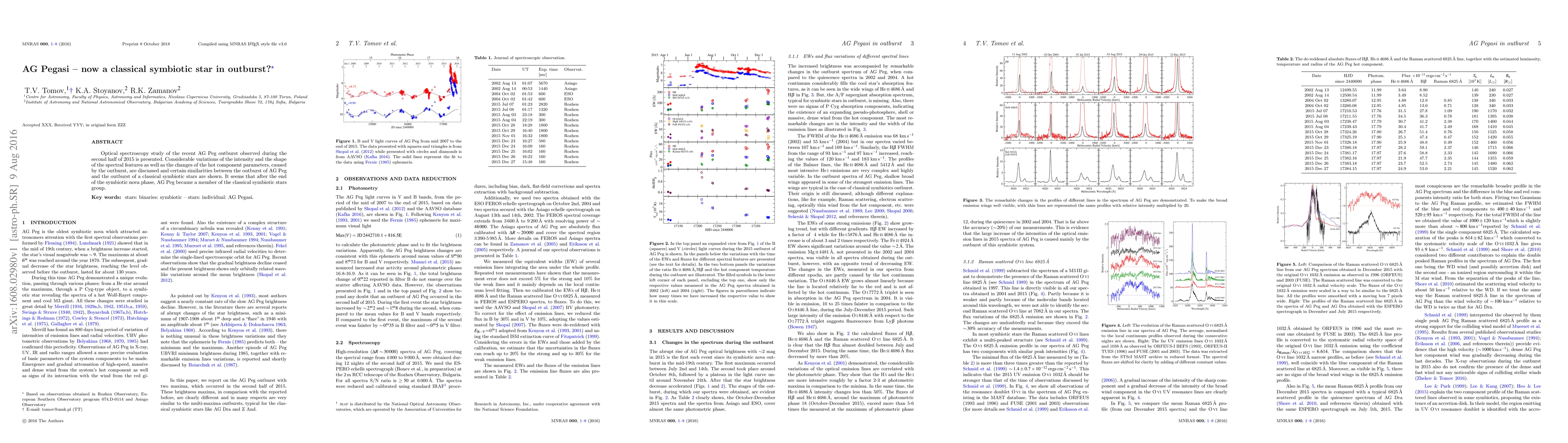 This research identifies AG Pegasi as a symbiotic star in outburst that transitions into a classical symbiotic star post-outburst, providing insights into the evolution of such systems.