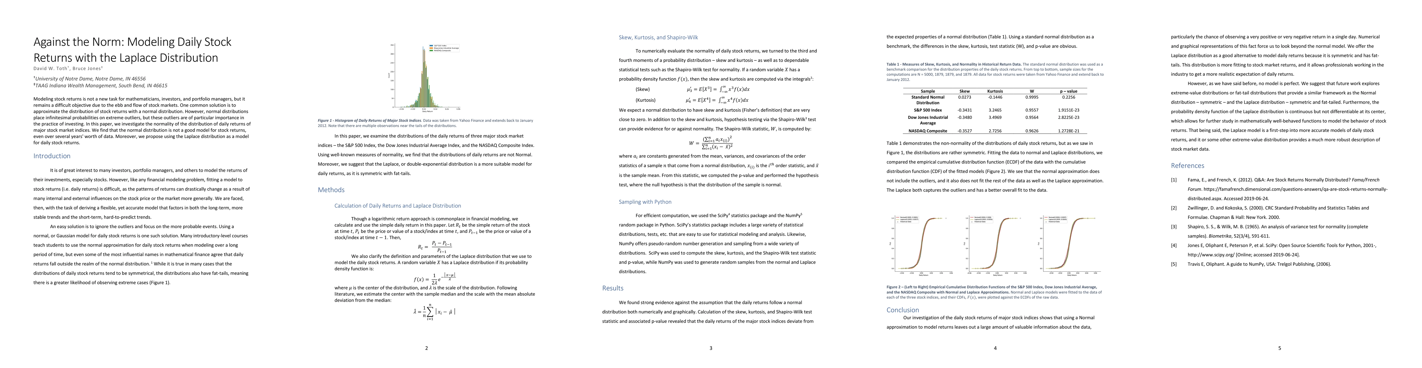 This paper examines the inadequacy of the normal distribution in modeling daily stock returns, highlighting the importance of extreme outliers in investing. It suggests the Laplace distribution as a more suitable alternative for modeling daily stock returns due to its better handling of extreme values.