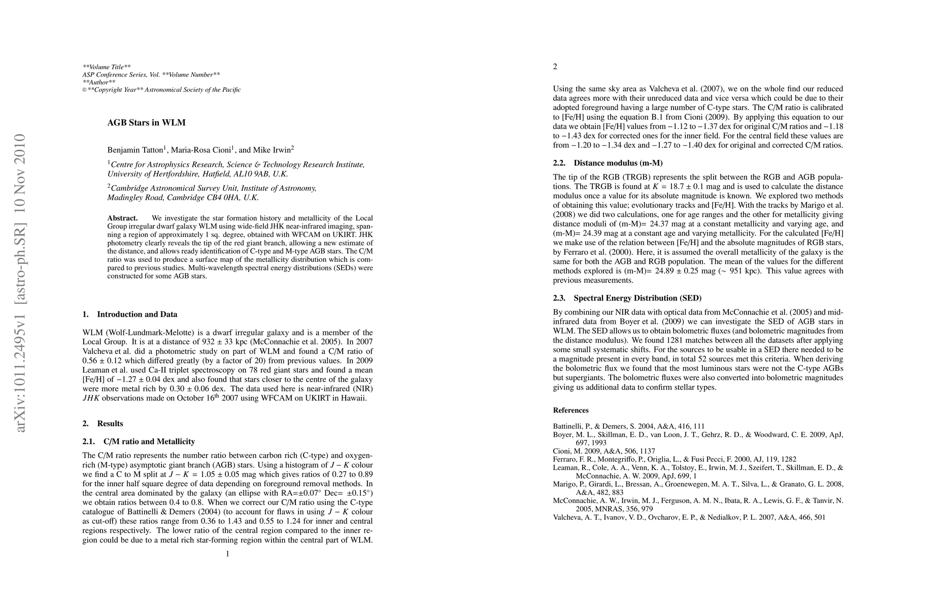This study uses wide-field near-infrared imaging to investigate the star formation history and metallicity of the Local Group irregular dwarf galaxy WLM, revealing the presence of C-type and M-type AGB stars and producing a surface map of metallicity distribution compared to previous studies. Multi-wavelength spectral energy distributions for some AGB stars were also constructed.