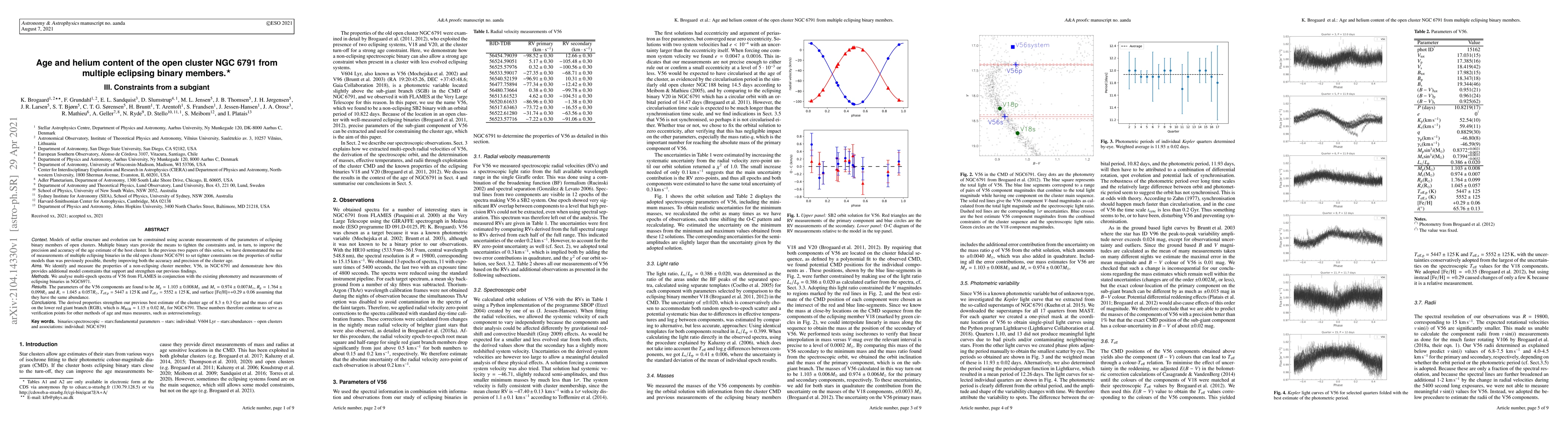 Models of stellar structure and evolution can be constrained using accurate measurements of the parameters of eclipsing binary members of open clusters. Multiple binary stars provide the means to tighten the constraints and, in turn, to improve the precision and accuracy of the age estimate of the host cluster. In the previous two papers of this series, we have demonstrated the use of measurements of multiple eclipsing binaries in the old open cluster NGC6791 to set tighter constraints on the properties of stellar models than was previously possible, thereby improving both the accuracy and precision of the cluster age. We identify and measure the properties of a non-eclipsing cluster member, V56, in NGC\,6791 and demonstrate how this provides additional model constraints that support and strengthen our previous findings. We analyse multi-epoch spectra of V56 from FLAMES in conjunction with the existing photometry and measurements of eclipsing binaries in NGC6971. The parameters of the V56 components are found to be $M_{\rm p}=1.103\pm 0.008 M_{\odot}$ and $M_{\rm s}=0.974\pm 0.007 M_{\odot}$, $R_{\rm p}=1.764\pm0.099 R_{\odot}$ and $R_{\rm s}=1.045\pm0.057 R_{\odot}$, $T_{\rm eff,p}=5447\pm125$ K and $T_{\rm eff,s}=5552\pm125$ K, and surface [Fe/H]=$+0.29\pm0.06$ assuming that they have the same abundance. The derived properties strengthen our previous best estimate of the cluster age of $8.3\pm0.3$ Gyr and the mass of stars on the lower red giant branch (RGB), which is $M_{\rm RGB} = 1.15\pm0.02M_{\odot}$ for NGC6791. These numbers therefore continue to serve as verification points for other methods of age and mass measures, such as asteroseismology.