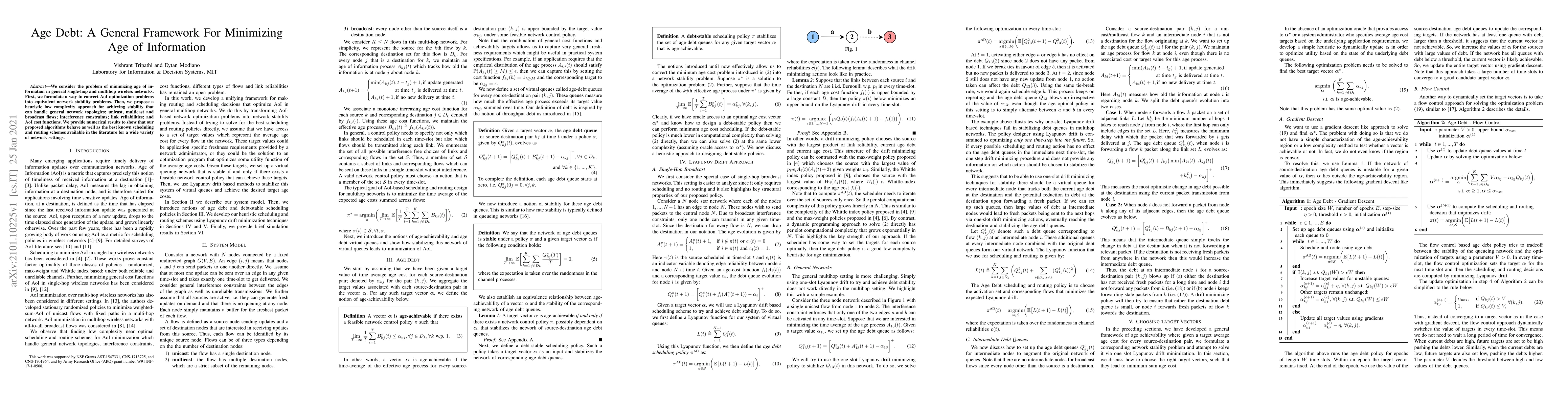 We consider the problem of minimizing age of information in general single-hop and multihop wireless networks. First, we formulate a way to convert AoI optimization problems into equivalent network stability problems. Then, we propose a heuristic low complexity approach for achieving stability that can handle general network topologies; unicast, multicast and broadcast flows; interference constraints; link reliabilities; and AoI cost functions. We provide numerical results to show that our proposed algorithms behave as well as the best known scheduling and routing schemes available in the literature for a wide variety of network settings.
