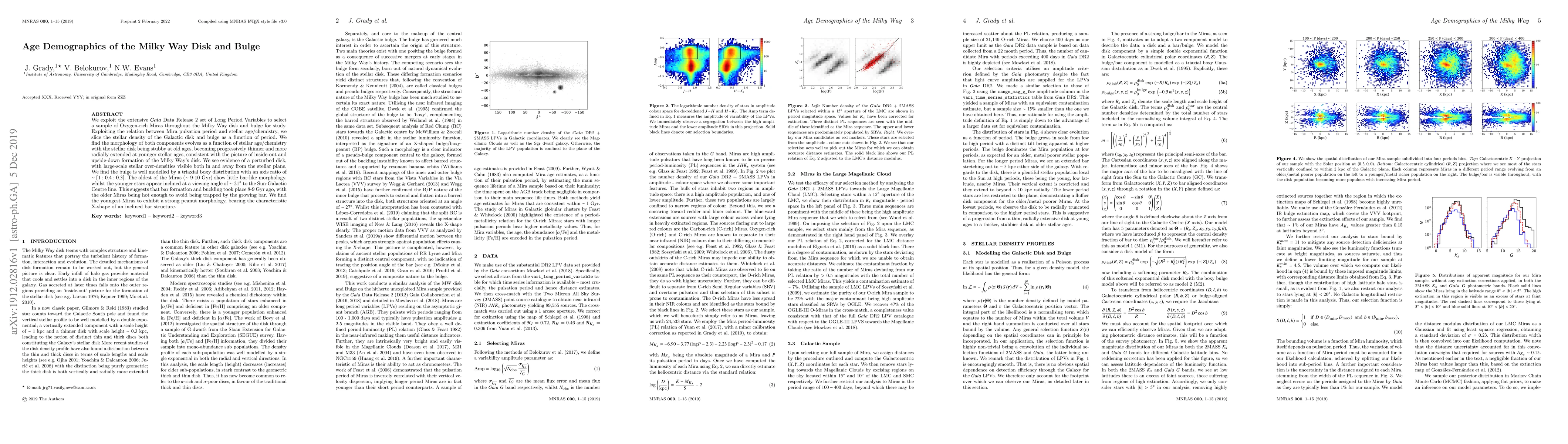 The study uses Gaia DR2 data to select O-rich Miras and map their distribution across the Galactic disk and bulge, exploiting the correlation between Mira pulsation period and stellar age/chemistry to chronologically slice through the Galaxy.