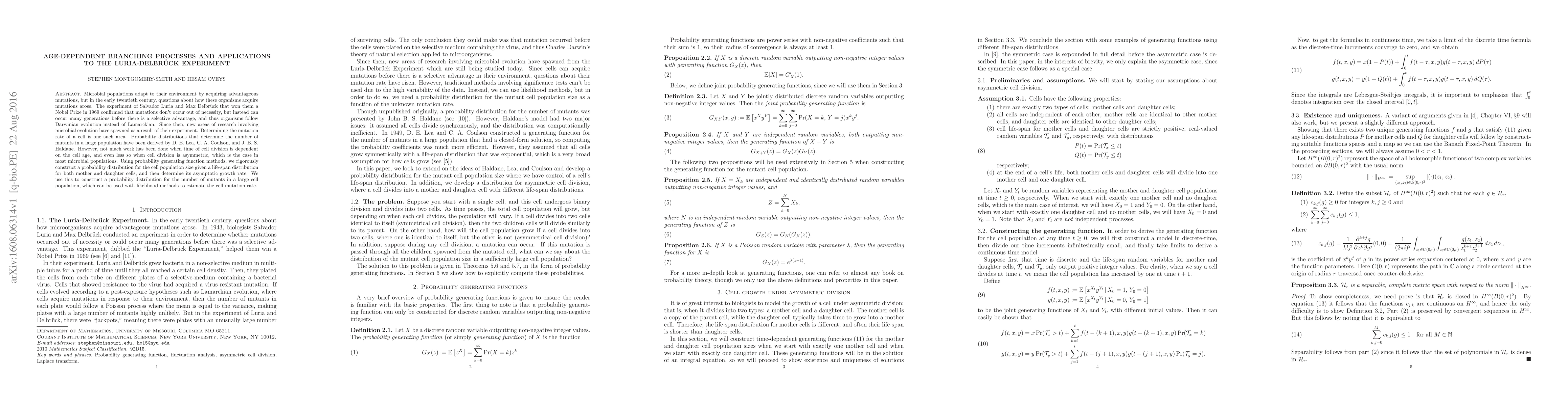 This paper develops a probability distribution for the size of microbial populations where cell division depends on age, including asymmetric division. It uses this to derive a new distribution for the number of mutants in large populations, aiding in the estimation of mutation rates, extending the foundational Luria-Delbrück experiment.