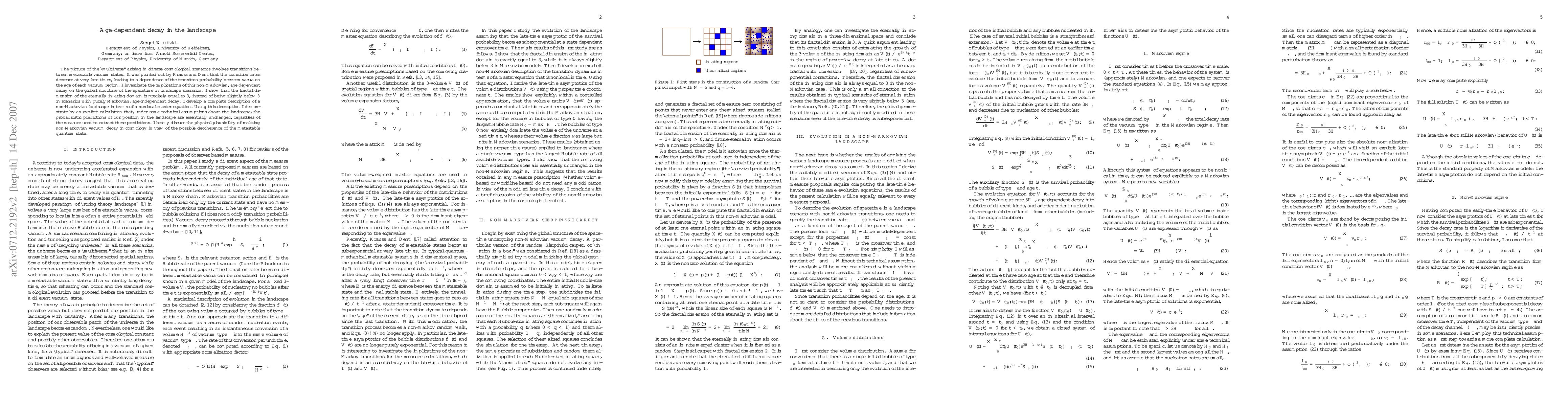 This paper explores the implications of age-dependent decay in cosmological "multiverse" landscapes, showing that the fractal dimension of eternally inflating regions is exactly 3 due to non-Markovian effects. It develops a nonlocal master equation to describe this decay and finds that probabilistic predictions remain consistent despite the age-dependence.