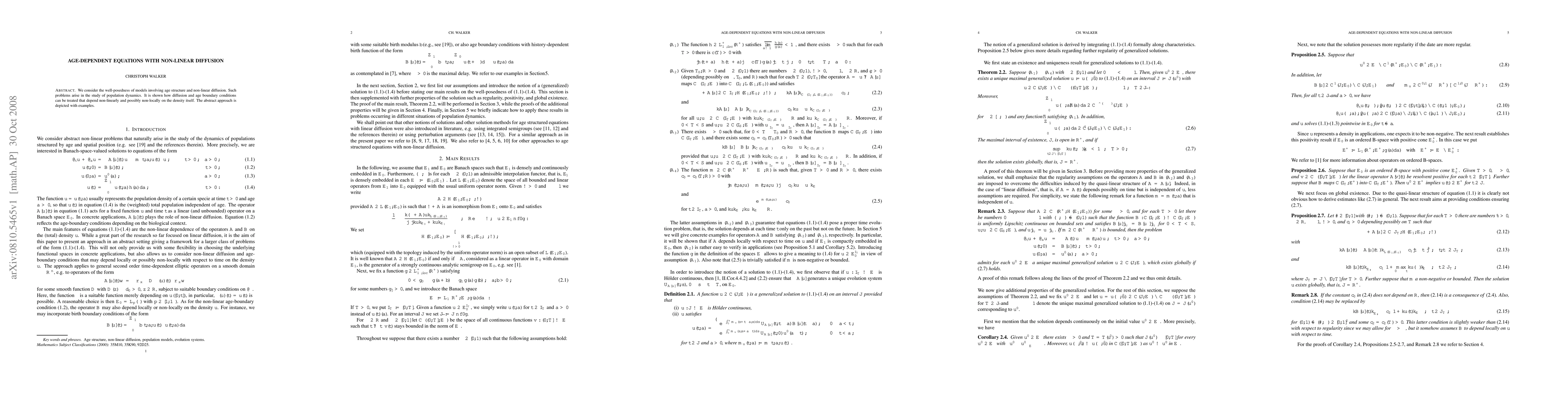 This paper investigates the well-posedness of age-structured population models with non-linear diffusion, demonstrating how to handle diffusion and age-dependent boundary conditions that depend on density. Examples illustrate the abstract approach.