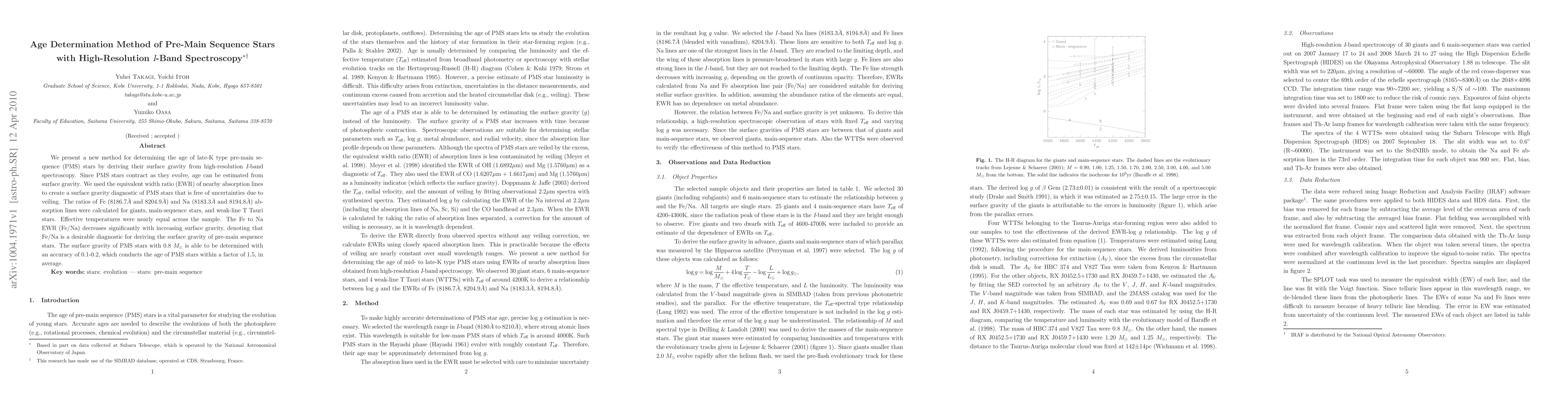 This paper introduces a novel method for estimating the age of late-K type pre-main sequence stars using high-resolution I-band spectroscopy to determine surface gravity. The Fe/Na equivalent width ratio is identified as a reliable diagnostic for surface gravity, leading to an accurate age estimation within a factor of 1.5 on average.