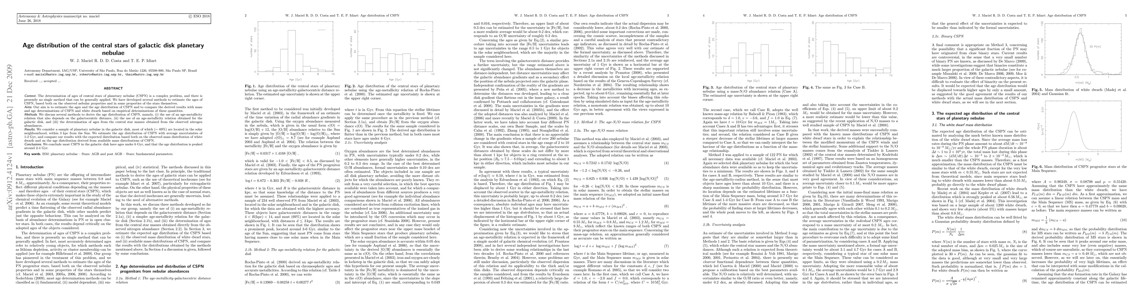 The determination of ages of central stars of planetary nebulae (CSPN) is a complex problem, and there is presently no single method that can be generally applied. We have developed several methods to estimate the ages of CSPN, based both on the observed nebular properties and in some properties of the stars themselves.Our aim is to estimate the ages and the age distribution of CSPN and to compare the derived results with mass and age determinations of CSPN and white dwarfs based on empirical determinations of these quantities. We discuss several methods to derive the age distribution of CSPN, namely, (i) the use of an age-metallicity relation that also depends on the galactocentric distance, (ii) the use of an age-metallicity relation obtained for the galactic disk, and (iii) the determination of ages from the central star masses obtained from the observed nitrogen abundances. We consider a sample of planetary nebulae in the galactic disk, most of which ($\sim$ 69%) are located in the solar neighbourhood, within 3 kpc from the Sun. We estimate the age distribution of CSPN with average uncertainties of 1-2 Gyr, and compare our results with the expected distribution based both on the observed mass distribution of white dwarfs and on the age distribution derived from available mass distributions of CSPN. We conclude most CSPN in the galactic disk have ages under 6 Gyr, and that the age distribution is peaked around 2-4 Gyr.