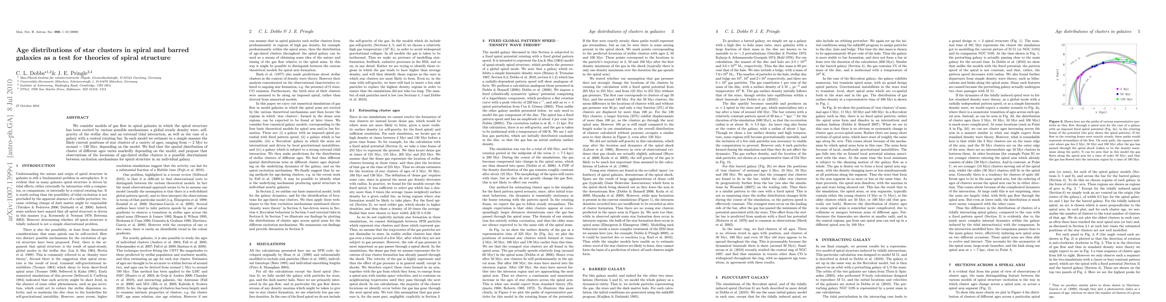 We consider models of gas flow in spiral galaxies in which the spiral structure has been excited by various possible mechanisms: a global steady density wave, self-gravity of the stellar disc and an external tidal interaction, as well as the case of a galaxy with a central rotating bar. In each model we estimate in a simple manner the likely current positions of star clusters of a variety of ages, ranging from ~ 2 Myr to around 130 Myr, depending on the model. We find that the spatial distribution of cluster of different ages varies markedly depending on the model, and propose that observations of the locations of age-dated stellar clusters is a possible discriminant between excitation mechanisms for spiral structure in an individual galaxy.