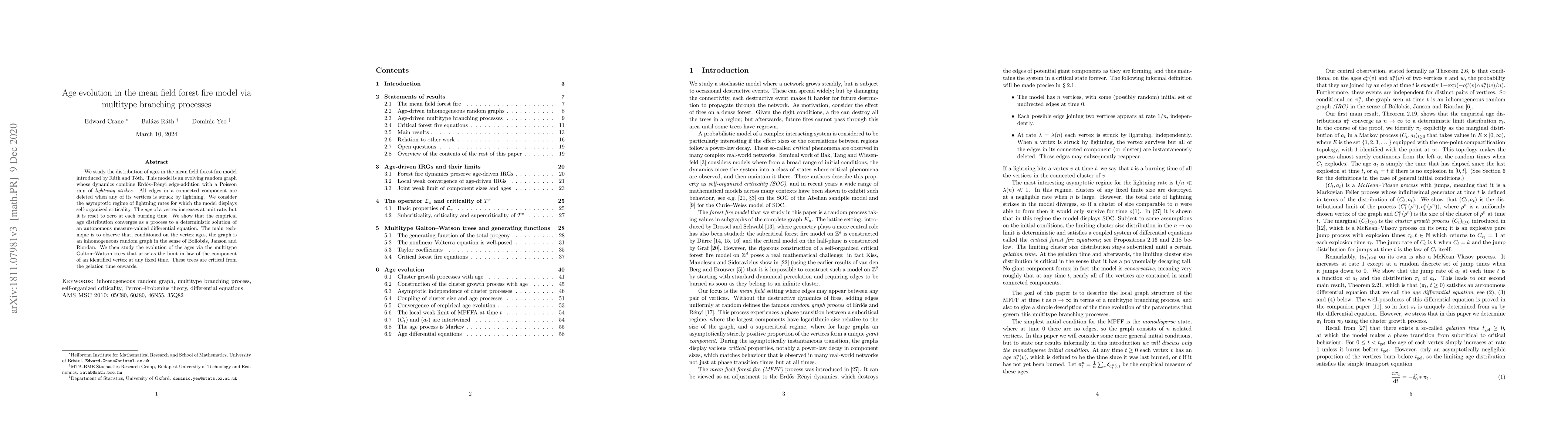 We study the distribution of ages in the mean field forest fire model introduced by R\'ath and T\'oth. This model is an evolving random graph whose dynamics combine Erd\H{o}s-R\'enyi edge-addition with a Poisson rain of lightning strikes. All edges in a connected component are deleted when any of its vertices is struck by lightning. We consider the asymptotic regime of lightning rates for which the model displays self-organized criticality. The age of a vertex increases at unit rate, but it is reset to zero at each burning time. We show that the empirical age distribution converges as a process to a deterministic solution of an autonomous measure-valued differential equation. The main technique is to observe that, conditioned on the vertex ages, the graph is an inhomogeneous random graph in the sense of Bollob\'as, Janson and Riordan. We then study the evolution of the ages via the multitype Galton--Watson trees that arise as the limit in law of the component of an identified vertex at any fixed time. These trees are critical from the gelation time onwards.