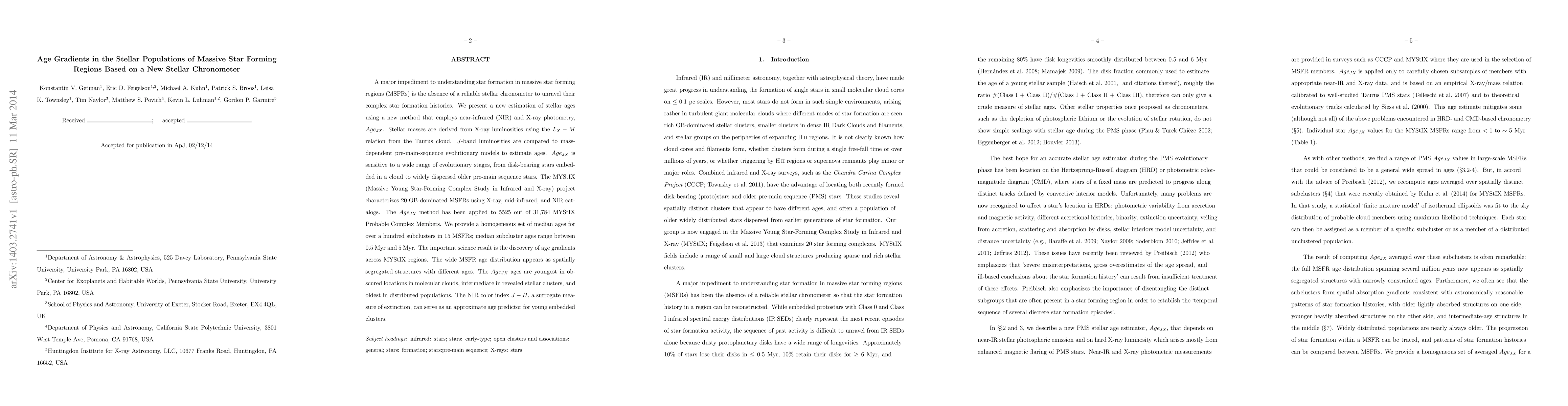 This paper introduces a new method, AgeJX, for estimating stellar ages in massive star-forming regions using NIR and X-ray photometry, revealing age gradients across these regions. The method identifies younger stars in obscured cloud locations, intermediate ages in revealed clusters, and older stars in dispersed populations.
