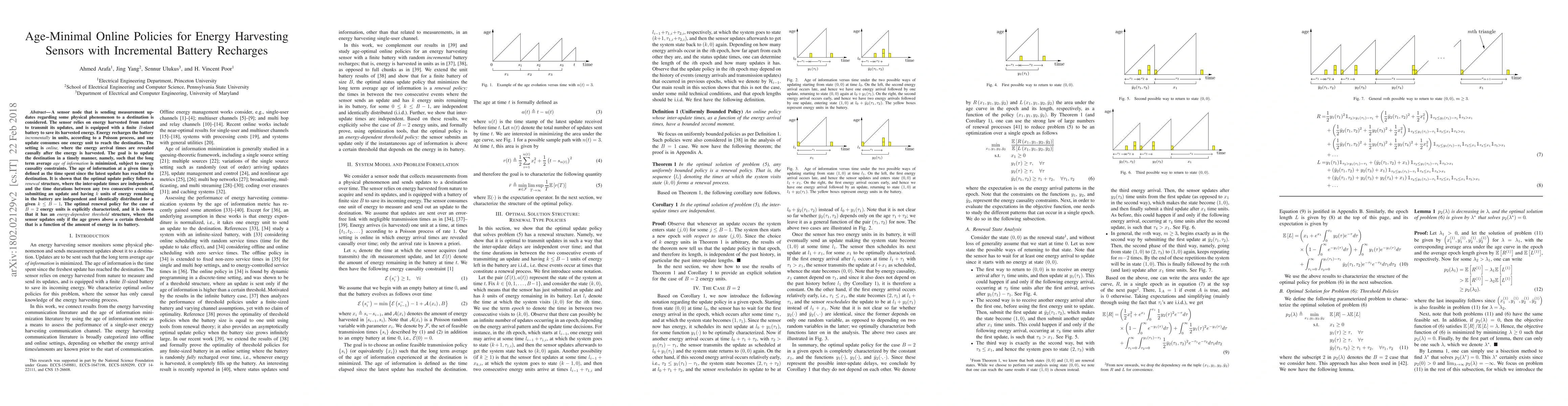 This paper investigates optimal online policies for energy harvesting sensors to minimize the long-term average age of information, given incremental battery recharges. The optimal policy exhibits a renewal structure with independent inter-update times, and for a battery size of 2 units, it is characterized by an energy-dependent threshold that determines when updates should occur based on the battery's energy level.