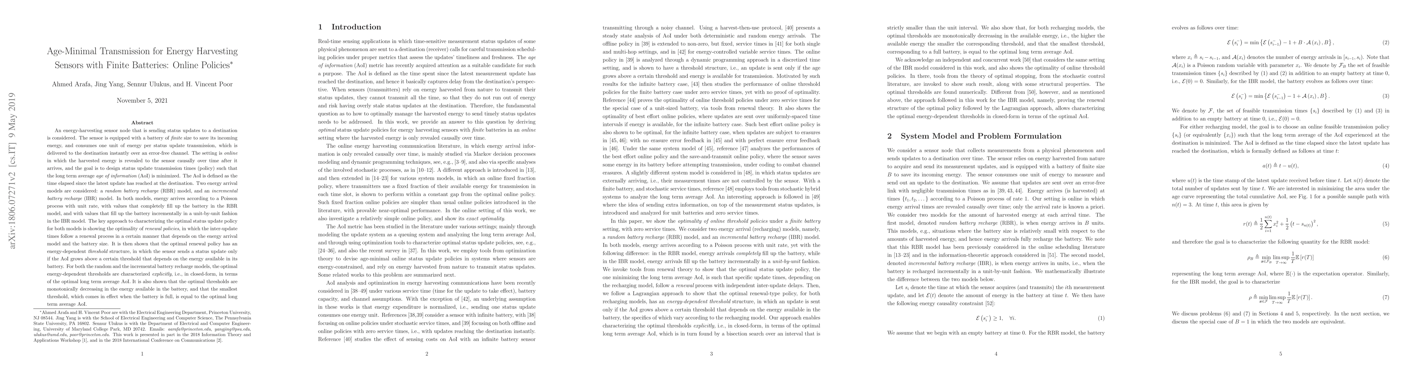 This paper investigates online policies for energy-harvesting sensor nodes with finite batteries to minimize the long-term average age of information (AoI). It proposes optimal status update transmission policies based on energy-dependent thresholds, showing that these thresholds are monotonically decreasing with available battery energy and characterized explicitly for both random and incremental battery recharge models.
