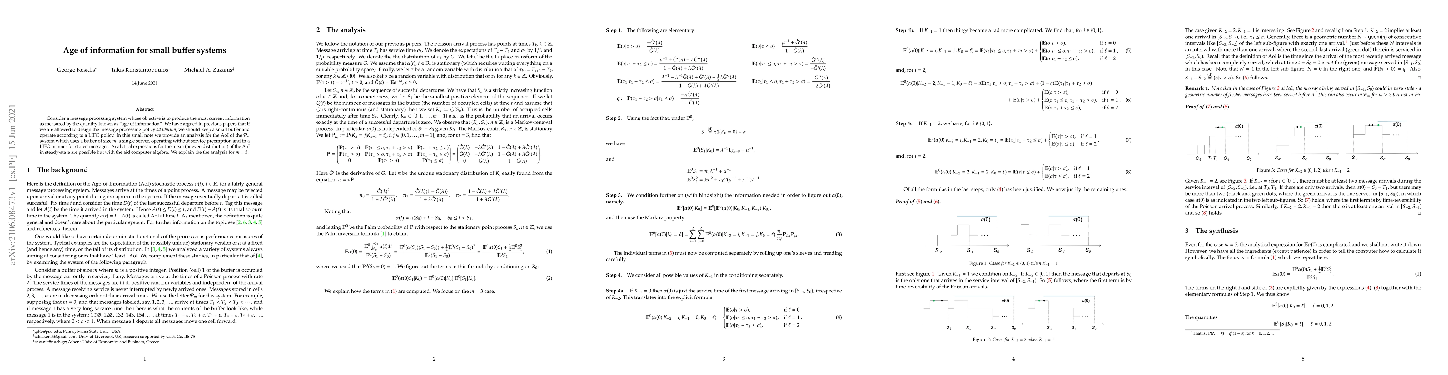 Consider a message processing system whose objective is to produce the most current information as measured by the quantity known as "age of information". We have argued in previous papers that if we are allowed to design the message processing policy ad libitum, we should keep a small buffer and operate according to a LIFO policy. In this small note we provide an analysis for the AoI of the P_m system which uses a buffer of size m, a single server, operating without service preemption and in a LIFO manner for stored messages. Analytical expressions for the mean (or even distribution) of the AoI in steady-state are possible but with the aid computer algebra. We explain the the analysis for m=3.