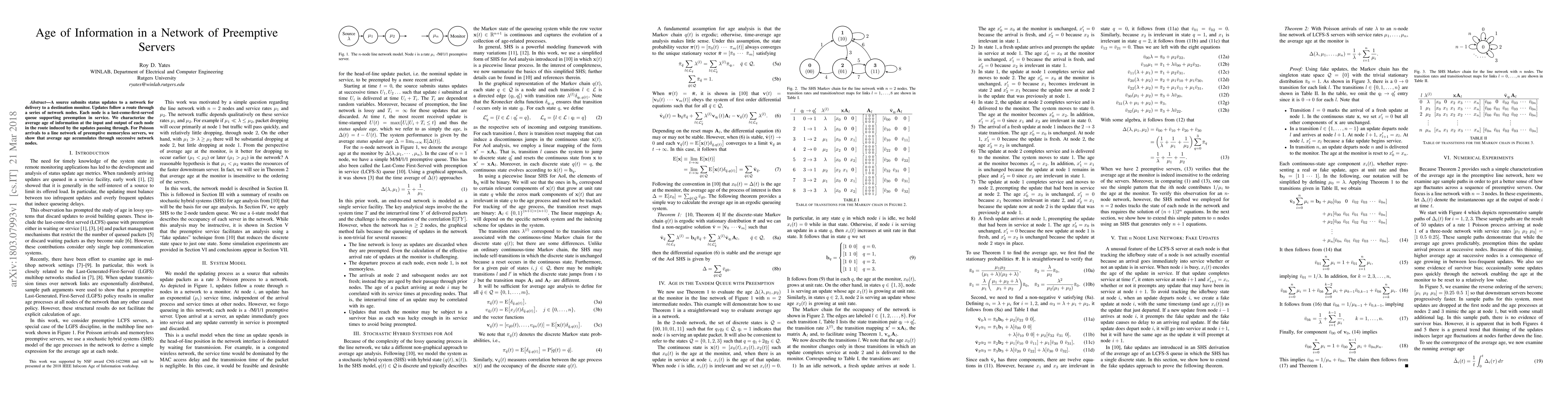 Researchers studied how information age accumulates in a network of servers that can preemptively take priority. They found that the average age of information increases as it passes through each node in the network route.