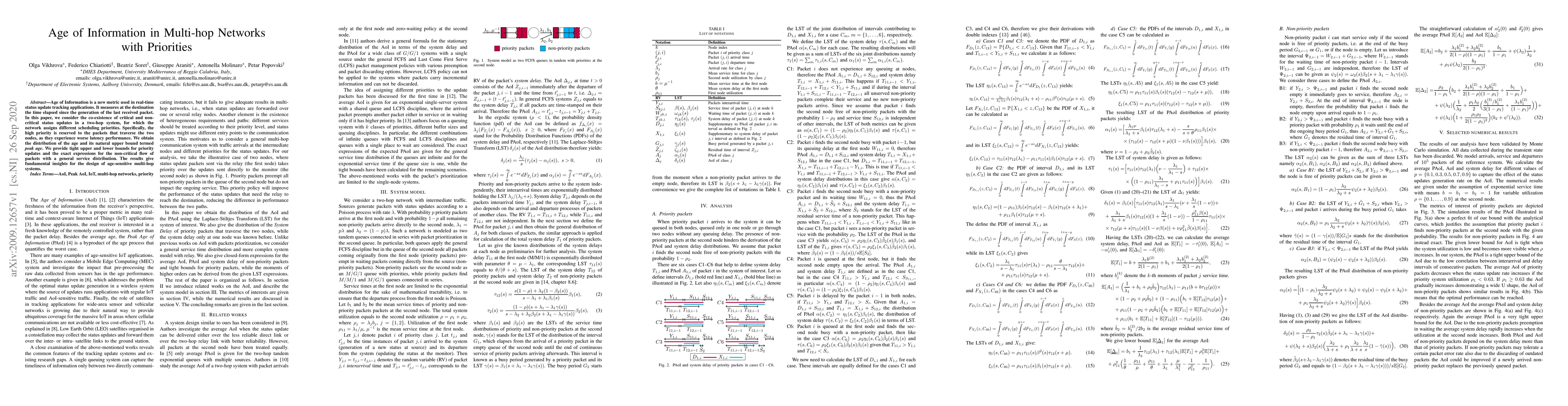 This paper investigates the Age of Information in a two-hop network where critical and noncritical updates coexist with different scheduling priorities. It derives the distribution of the age and peak age, and provides tight bounds for priority updates, offering insights for designing age-sensitive multi-hop systems.