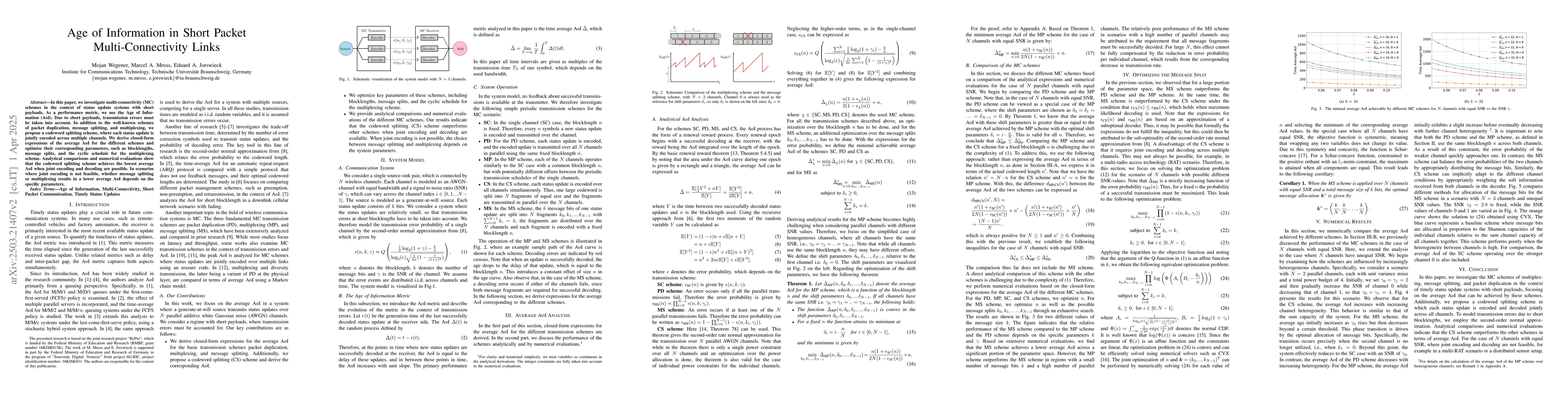 Researchers developed a new scheme to reduce information age in status update systems with short payloads over multi-connectivity links, achieving lower average age of information than existing methods.