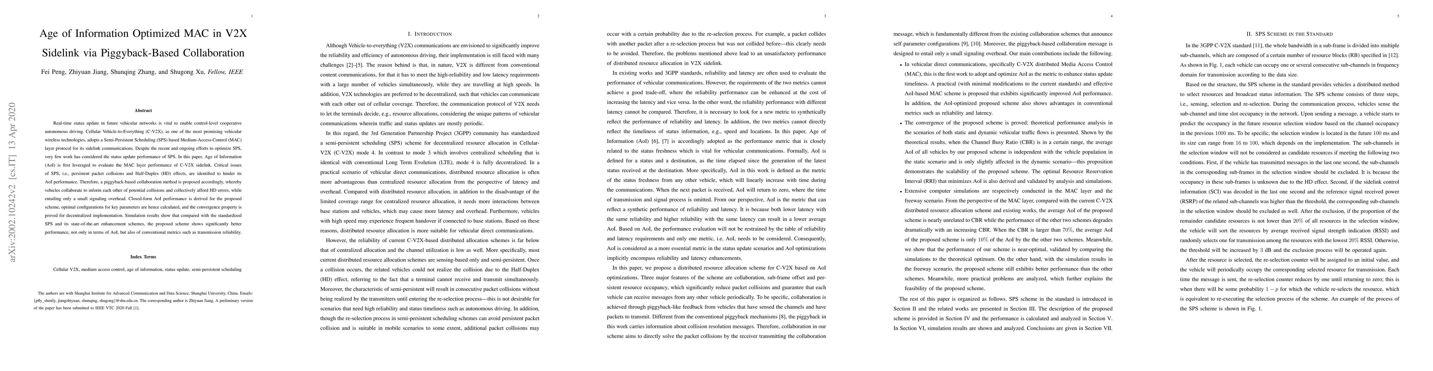 Real-time status update in future vehicular networks is vital to enable control-level cooperative autonomous driving. Cellular Vehicle-to-Everything (C-V2X), as one of the most promising vehicular wireless technologies, adopts a Semi-Persistent Scheduling (SPS) based Medium-Access-Control (MAC) layer protocol for its sidelink communications. Despite the recent and ongoing efforts to optimize SPS, very few work has considered the status update performance of SPS. In this paper, Age of Information (AoI) is first leveraged to evaluate the MAC layer performance of C-V2X sidelink. Critical issues of SPS, i.e., persistent packet collisions and Half-Duplex (HD) effects, are identified to hinder its AoI performance. Therefore, a piggyback-based collaboration method is proposed accordingly, whereby vehicles collaborate to inform each other of potential collisions and collectively afford HD errors, while entailing only a small signaling overhead. Closed-form AoI performance is derived for the proposed scheme, optimal configurations for key parameters are hence calculated, and the convergence property is proved for decentralized implementation. Simulation results show that compared with the standardized SPS and its state-of-the-art enhancement schemes, the proposed scheme shows significantly better performance, not only in terms of AoI, but also of conventional metrics such as transmission reliability.