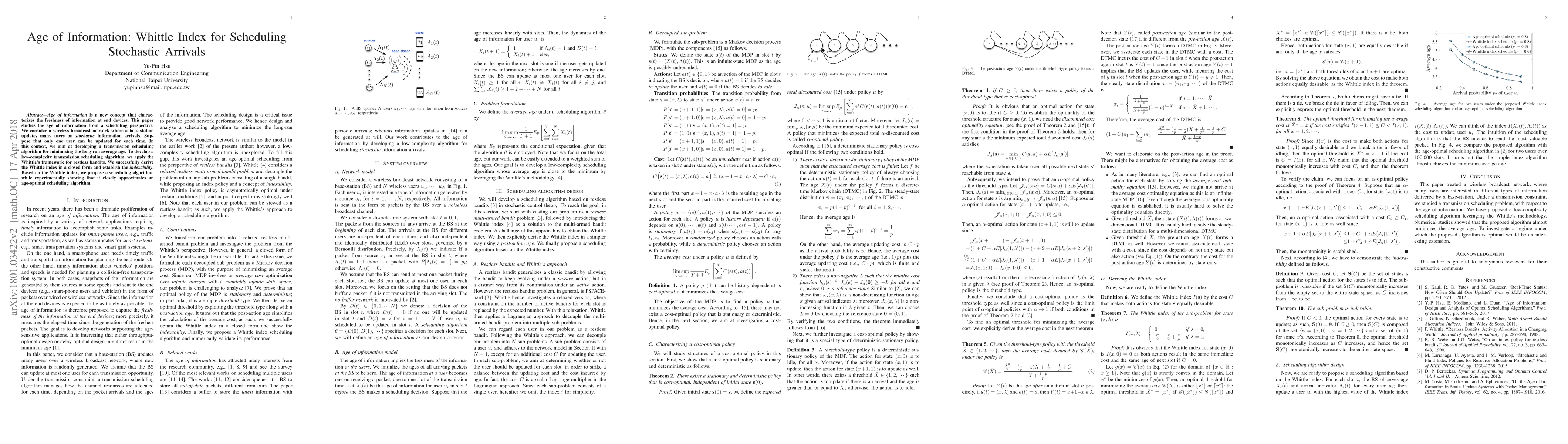 This paper develops a transmission scheduling algorithm to minimize long-run average age of information in a wireless broadcast network with stochastic arrivals, using Whittle's framework for restless bandits.