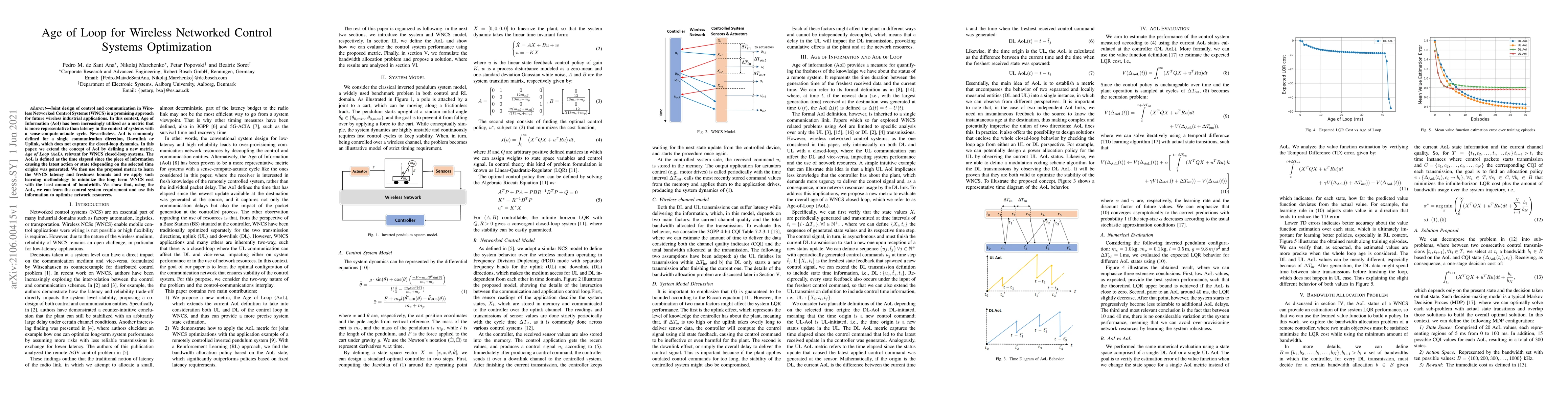 Joint design of control and communication in Wireless Networked Control Systems (WNCS) is a promising approach for future wireless industrial applications. In this context, Age of Information (AoI) has been increasingly utilized as a metric that is more representative than latency in the context of systems with a sense-compute-actuate cycle. Nevertheless, AoI is commonly defined for a single communication direction, Downlink or Uplink, which does not capture the closed-loop dynamics. In this paper, we extend the concept of AoI by defining a new metric, Age of Loop (AoL), relevant for WNCS closed-loop systems. The AoL is defined as the time elapsed since the piece of information causing the latest action or state (depending on the selected time origin) was generated. We then use the proposed metric to learn the WNCS latency and freshness bounds and we apply such learning methodology to minimize the long term WNCS cost with the least amount of bandwidth. We show that, using the AoL, we can learn the control system requirement and use this information to optimize network resources.