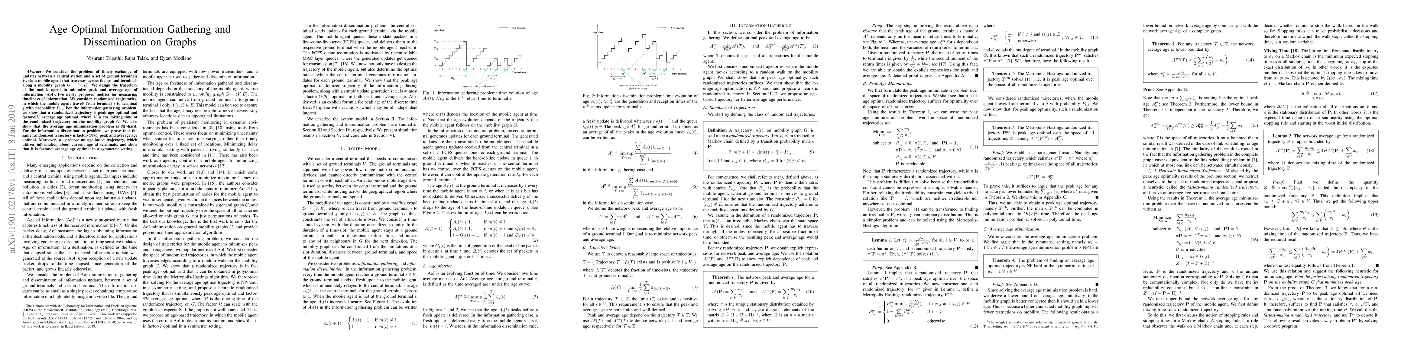 This paper addresses the timely exchange of updates between a central station and ground terminals via a mobile agent on a mobility graph, aiming to minimize the peak and average age of information (AoI). It demonstrates that randomized trajectories are optimal for both information gathering and dissemination, while also proving the NP-hardness of average age minimization.