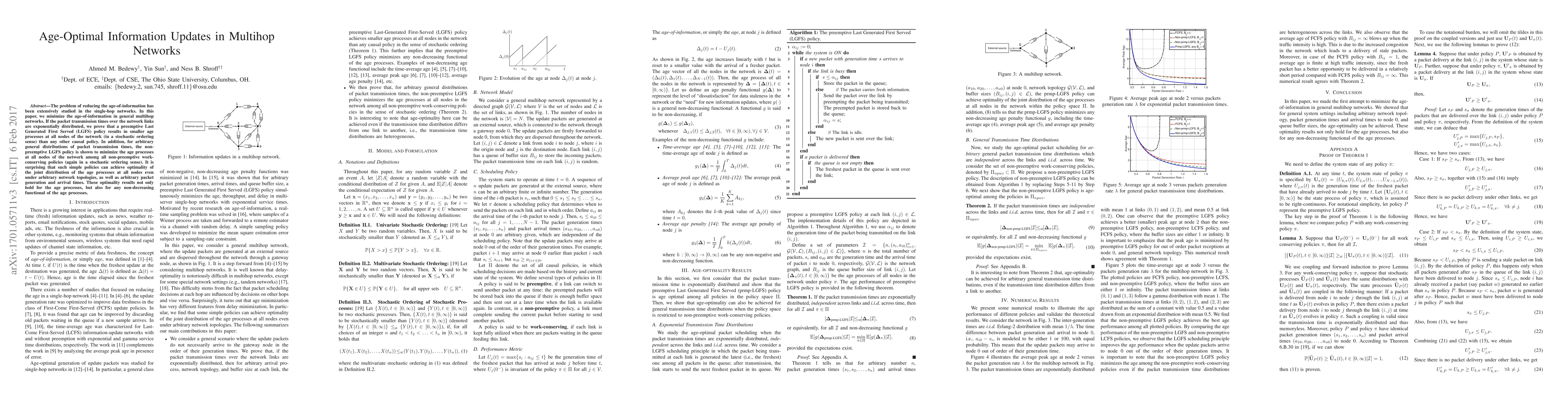 This paper investigates minimizing the age-of-information in multihop networks, proving that a preemptive Last Generated First Served (LGFS) policy optimally reduces age at all nodes under exponentially distributed transmission times. For general distributions, the non-preemptive LGFS policy minimizes the age among non-preemptive work-conserving policies, achieving optimality under arbitrary network conditions.