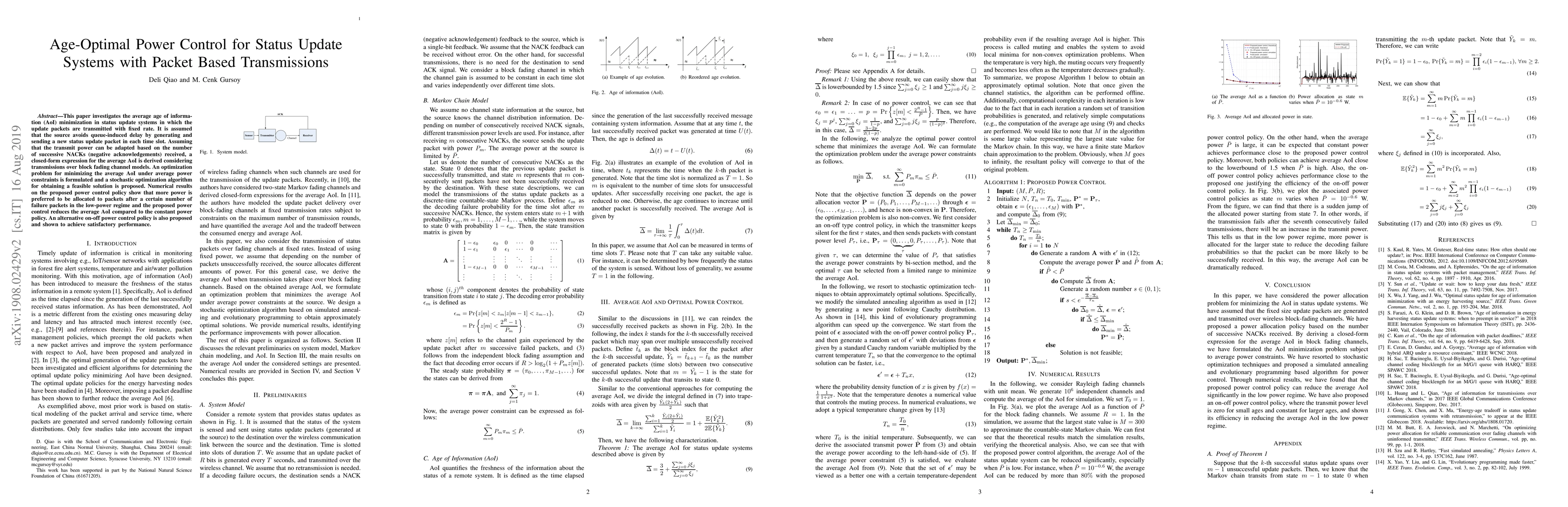 This paper proposes an age-optimal power control strategy to minimize the average age of information in status update systems with packet-based transmissions, deriving a closed-form expression for average AoI and formulating an optimization problem. The proposed stochastic optimization algorithm shows reduced average AoI compared to constant power policies.