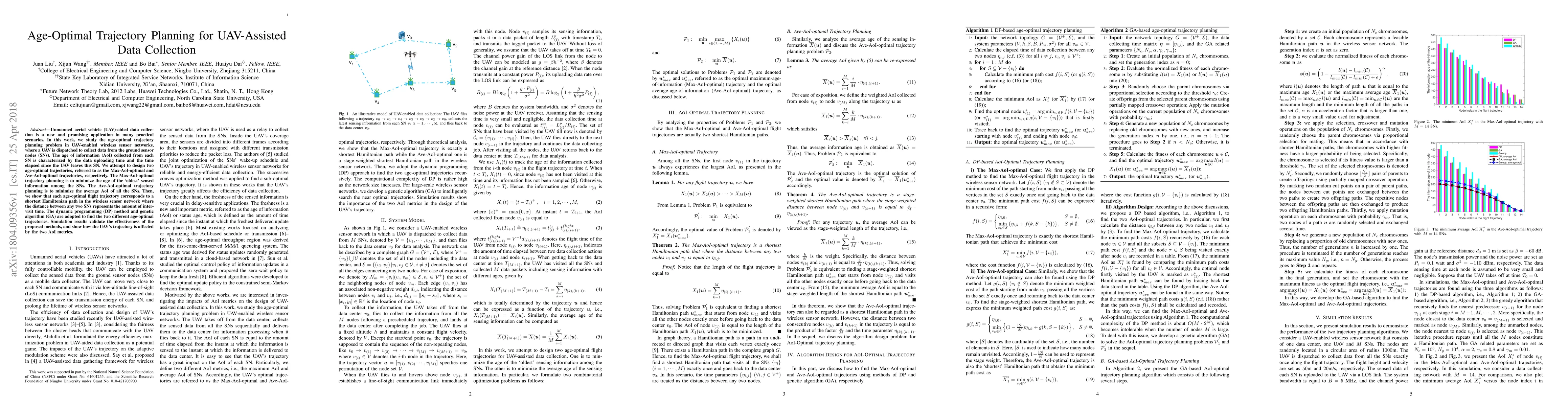 This paper proposes methods for age-optimal trajectory planning for UAVs to collect data from ground sensor nodes, aiming to minimize either the maximum or average age-of-information (AoI). The study uses dynamic programming and genetic algorithms to determine these optimal flight paths, demonstrating their effectiveness through simulations.