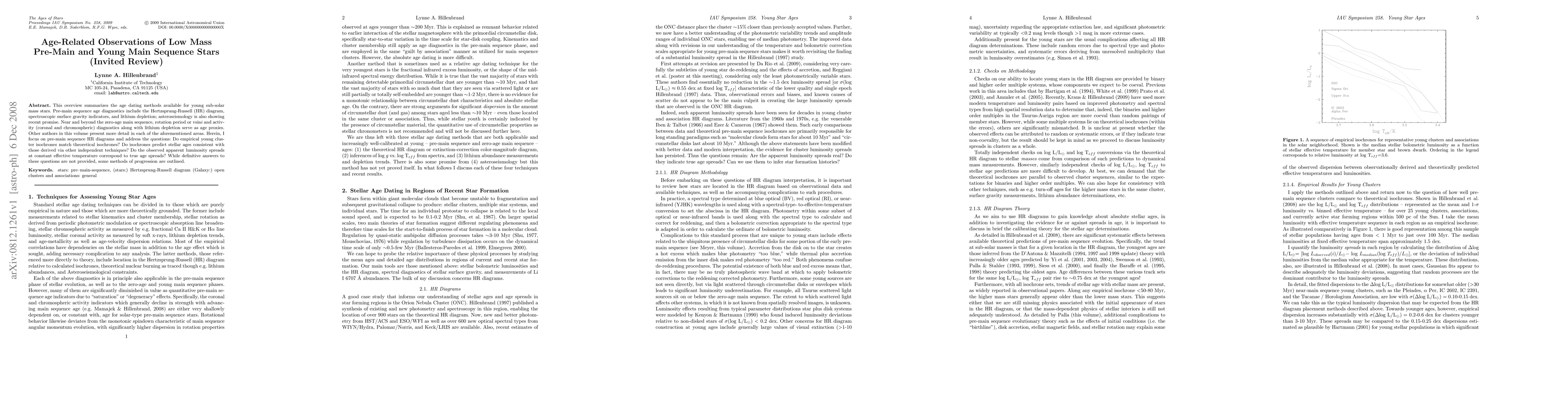 This review examines age dating methods for young sub-solar mass stars, focusing on pre-main sequence stars using HR diagrams and other diagnostics. It questions the alignment of empirical and theoretical isochrones and the correspondence of luminosity spreads to true age spreads, though definitive answers remain elusive.