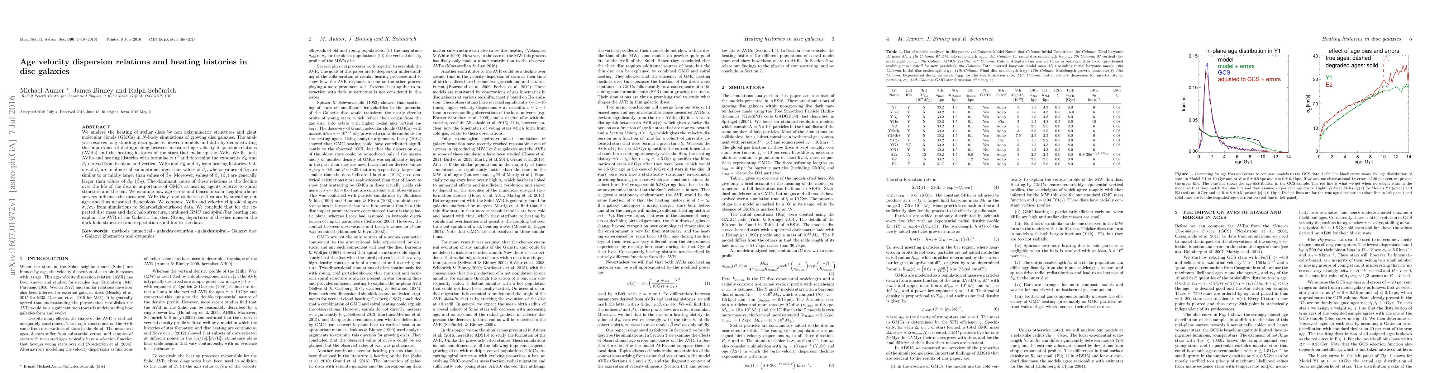 This paper investigates the heating of stellar discs in disc galaxies through non-axisymmetric structures and giant molecular clouds using N-body simulations. It reveals that the age-velocity dispersion relations (AVRs) differ from the heating histories of stars, with beta_z values from AVRs generally larger than those from heating histories, indicating the declining role of GMCs in heating over time.