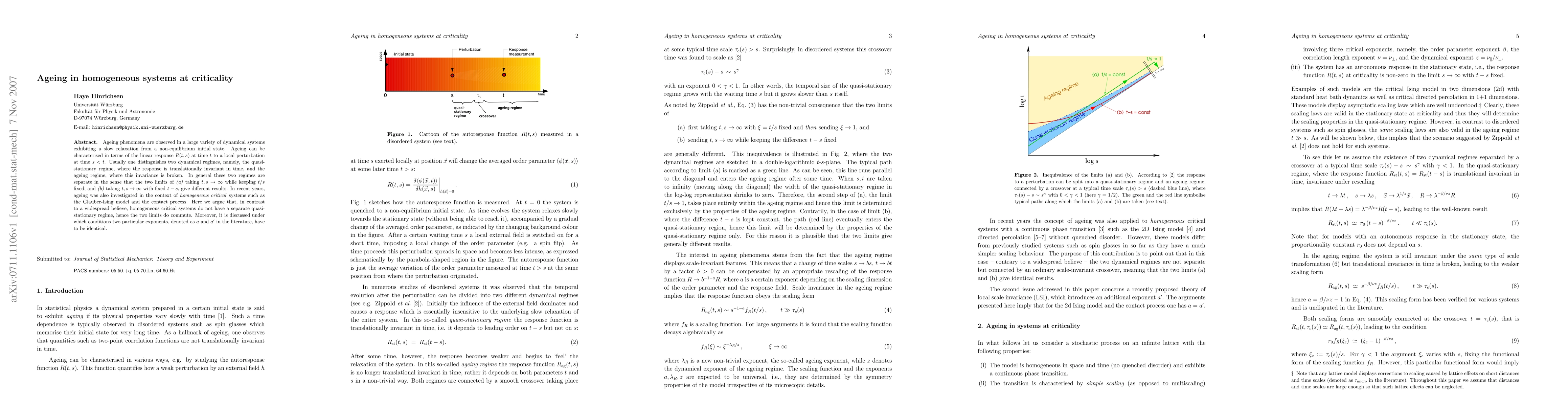 exhibiting a slow relaxation from a non-equilibrium initial state. Ageing can