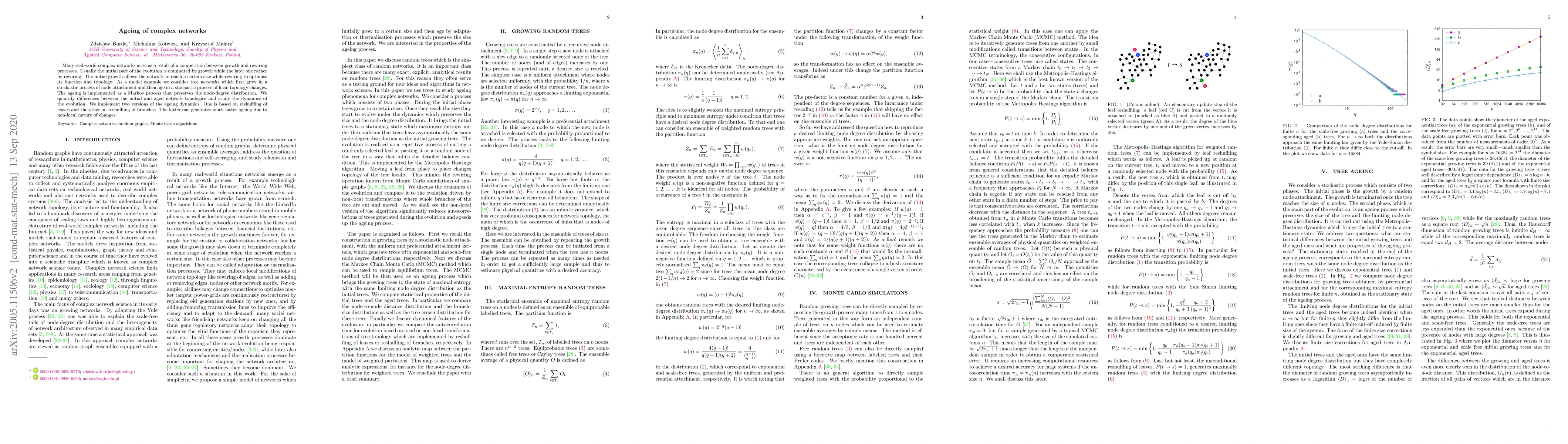 Researchers study how complex networks evolve over time, finding that older networks tend to have a different topology than their younger counterparts. They develop two models for network ageing, one based on reshuffling leaves and the other on branches, with the branch model producing faster ageing.