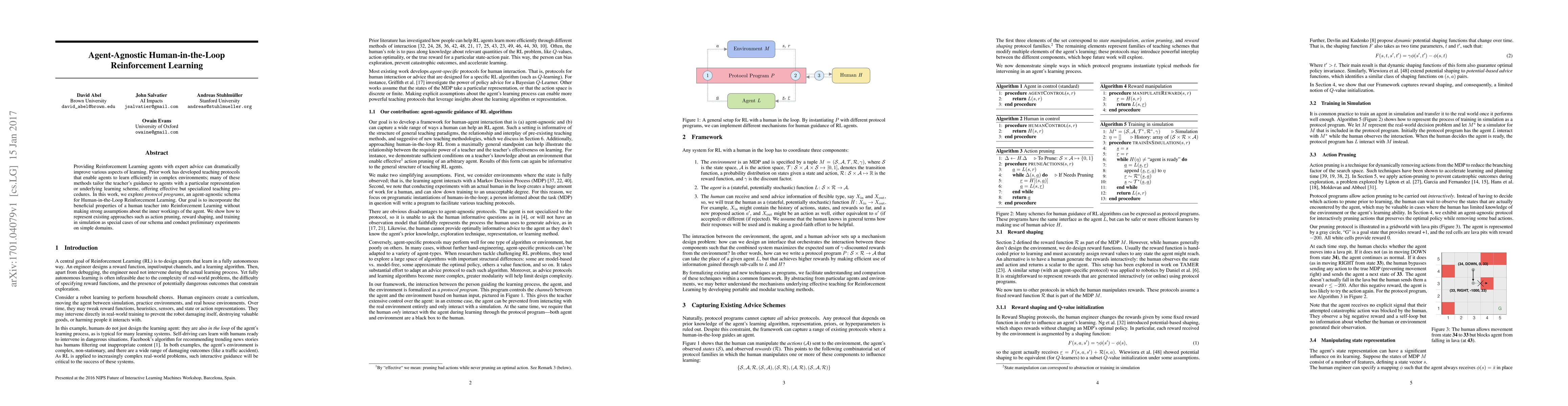 This paper proposes protocol programs, an agent-agnostic framework for Human-in-the-Loop Reinforcement Learning, aiming to leverage human expertise without specific assumptions about the agent's internal mechanisms. The authors demonstrate how existing teaching methods can be represented within this schema and conduct initial experiments in simple environments.