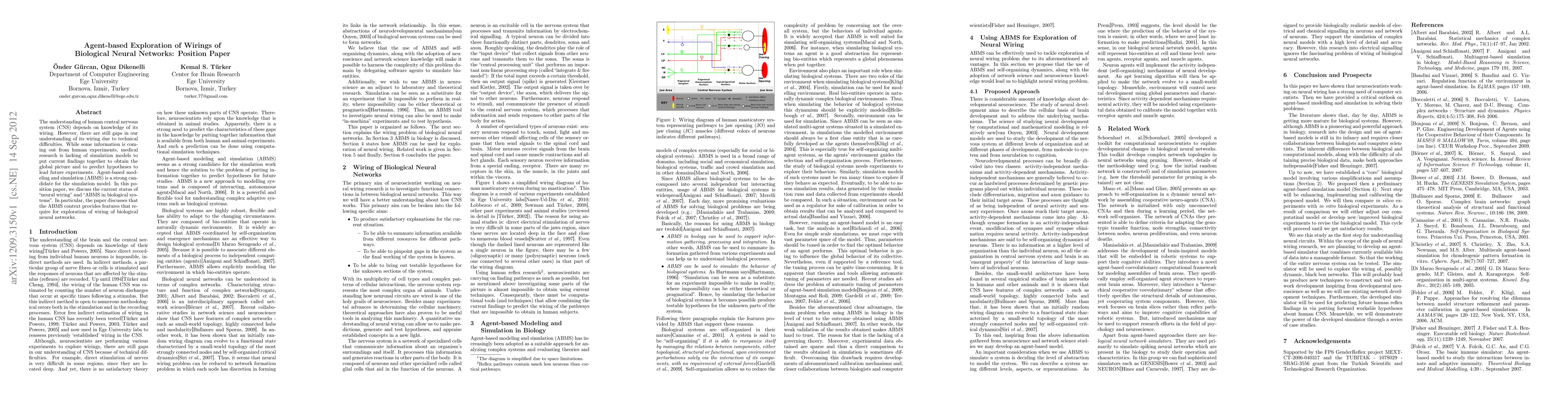 The understanding of human central nervous system depends on knowledge of its wiring. However, there are still gaps in our understanding of its wiring due to technical difficulties. While some information is coming out from human experiments, medical research is lacking of simulation models to put current findings together to obtain the global picture and to predict hypotheses to lead future experiments. Agent-based modeling and simulation (ABMS) is a strong candidate for the simulation model. In this position paper, we discuss the current status of "neural wiring" and "ABMS in biological systems". In particular, we discuss that the ABMS context provides features required for exploration of biological neural wiring.