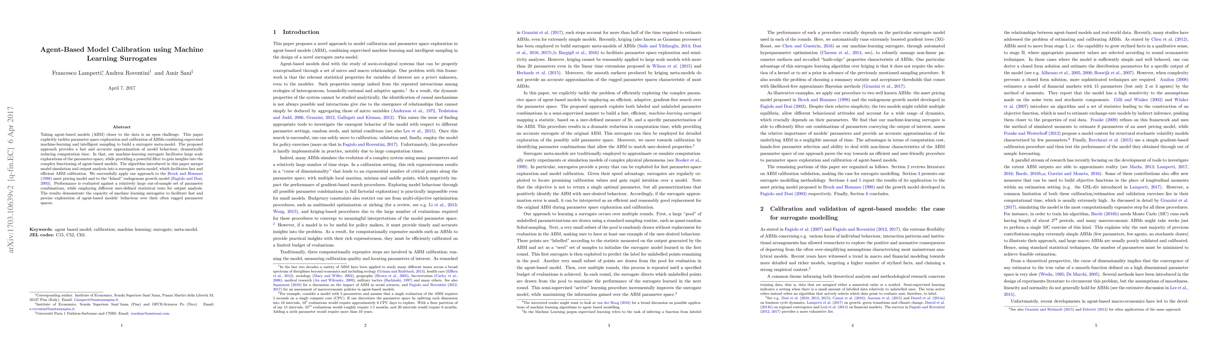 The paper proposes an approach that combines supervised machine learning and intelligent sampling to build a surrogate meta-model for agent-based model (ABM) calibration, significantly reducing computation time and facilitating exploration of complex parameter spaces.
