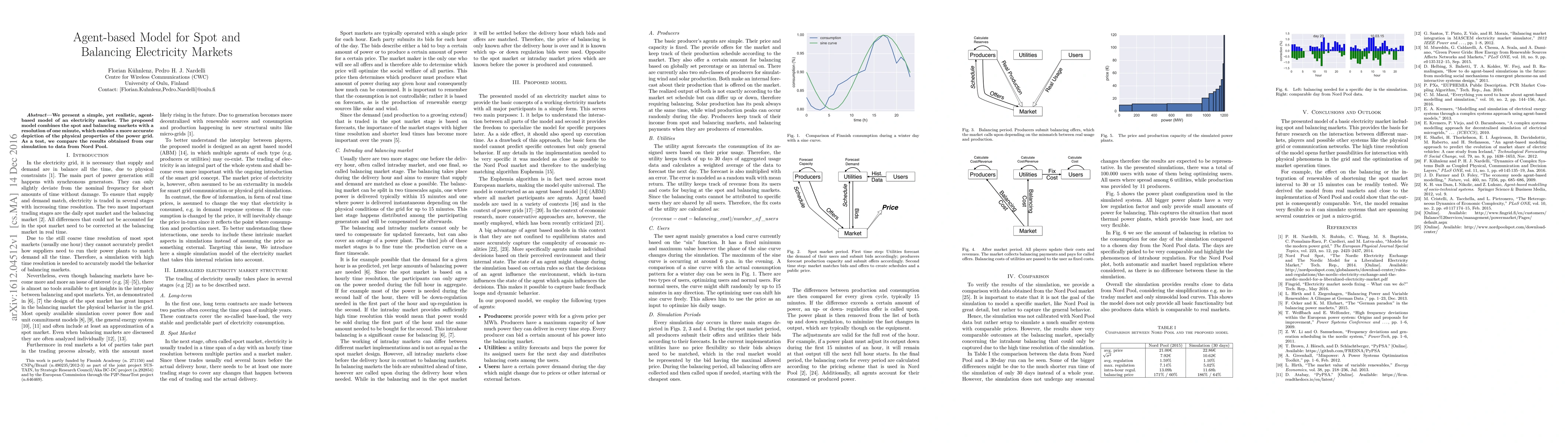 We present a simple, yet realistic, agent-based model of an electricity market. The proposed model combines the spot and balancing markets with a resolution of one minute, which enables a more accurate depiction of the physical properties of the power grid. As a test, we compare the results obtained from our simulation to data from Nord Pool.