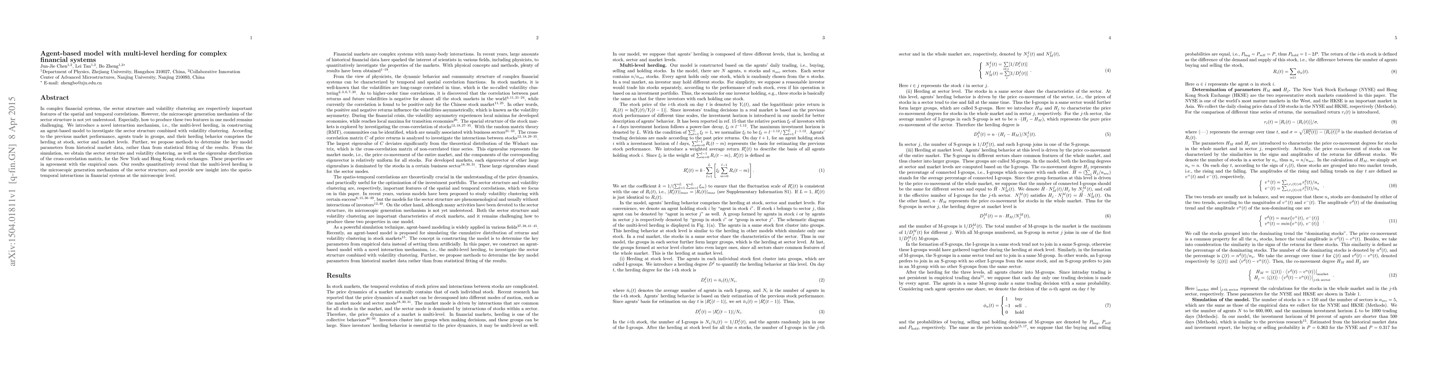 This paper develops an agent-based model incorporating multi-level herding to simulate complex financial systems, showing how sector structure and volatility clustering emerge. The model's parameters are derived from historical market data, and simulations reproduce observed sector structures and volatility patterns for the New York and Hong Kong stock exchanges.